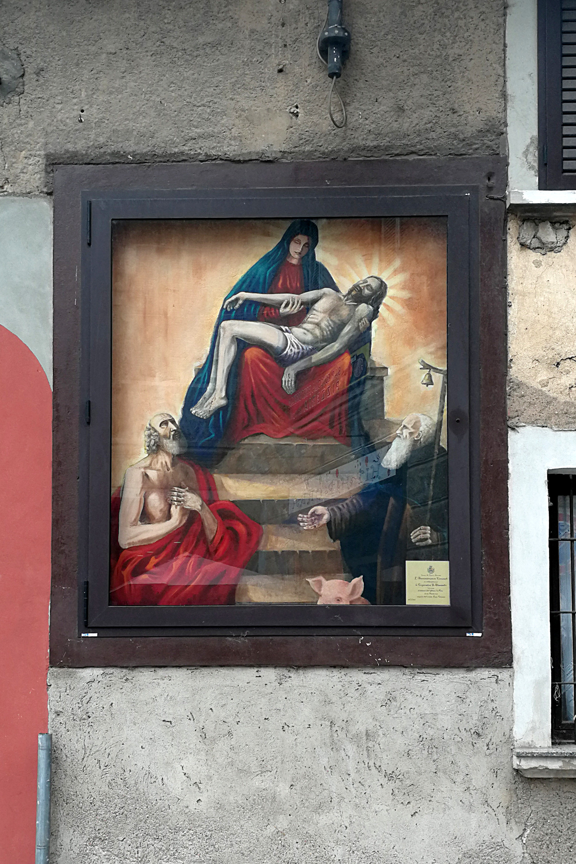 L'affresco della Pietà di Pertusella è dei primi del '900 ed è stato restaurato nel 2007. Ai piedi del Cristo San Gerolamo Padre della Chiesa a sinistra e Sant’Antonio Abate sulla destra