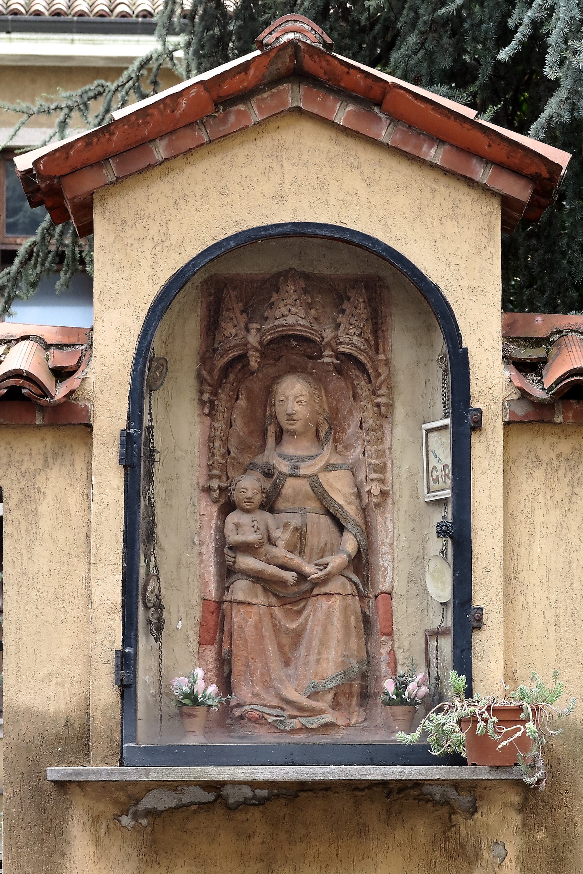 E’ di notevole interesse storico in quanto è la più antica edicola votiva monzese (risale al Quattrocento) e artistico; è in terracotta dipinta e ritrae la Madonna seduta su un trono con il Bambino sulle ginocchia.