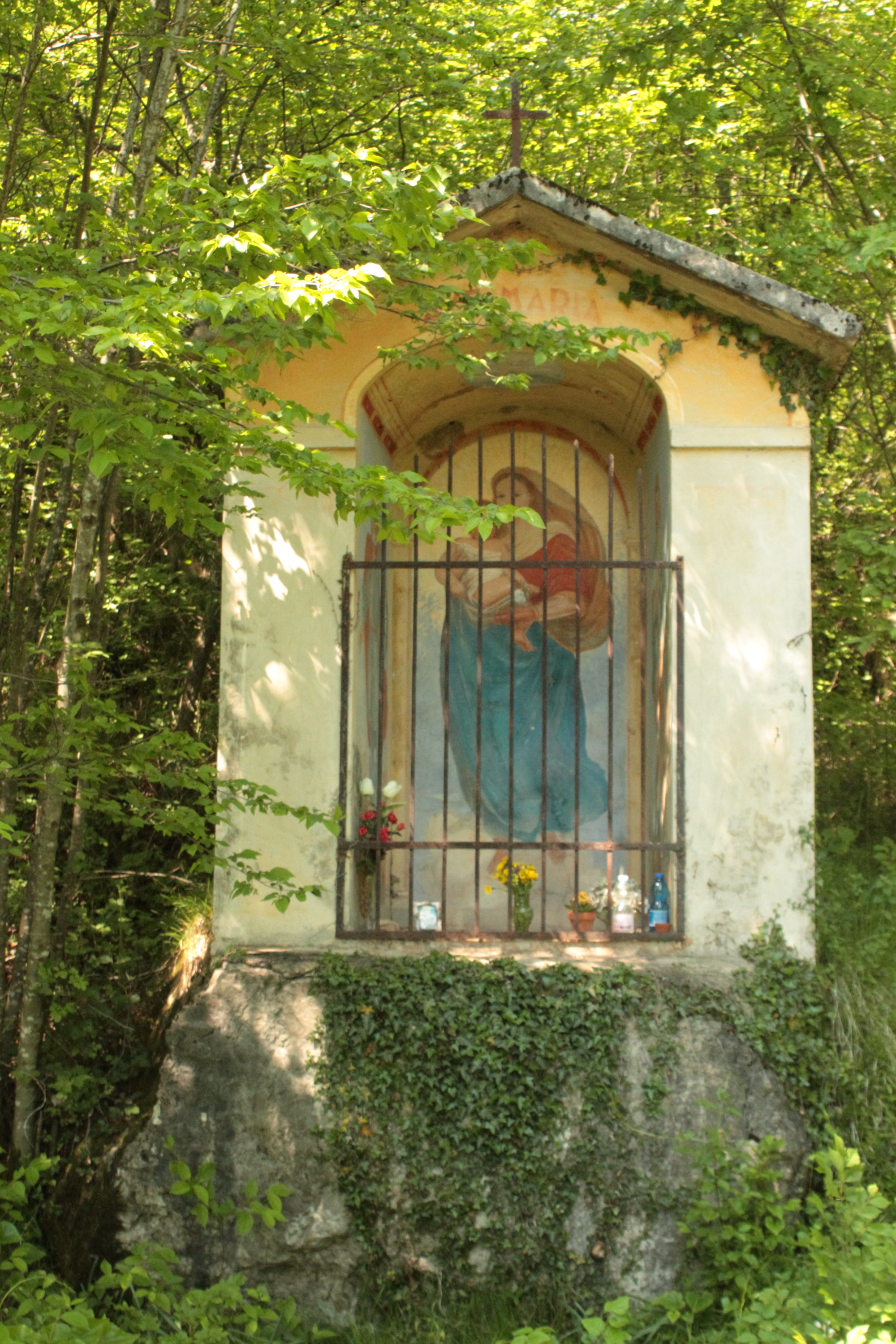 Edicola situata sulla vecchia mulattiera che collegava Magno con i Piani di Caregno, tuttora oggetto di devozione, i fiori freschi non mancano mai,