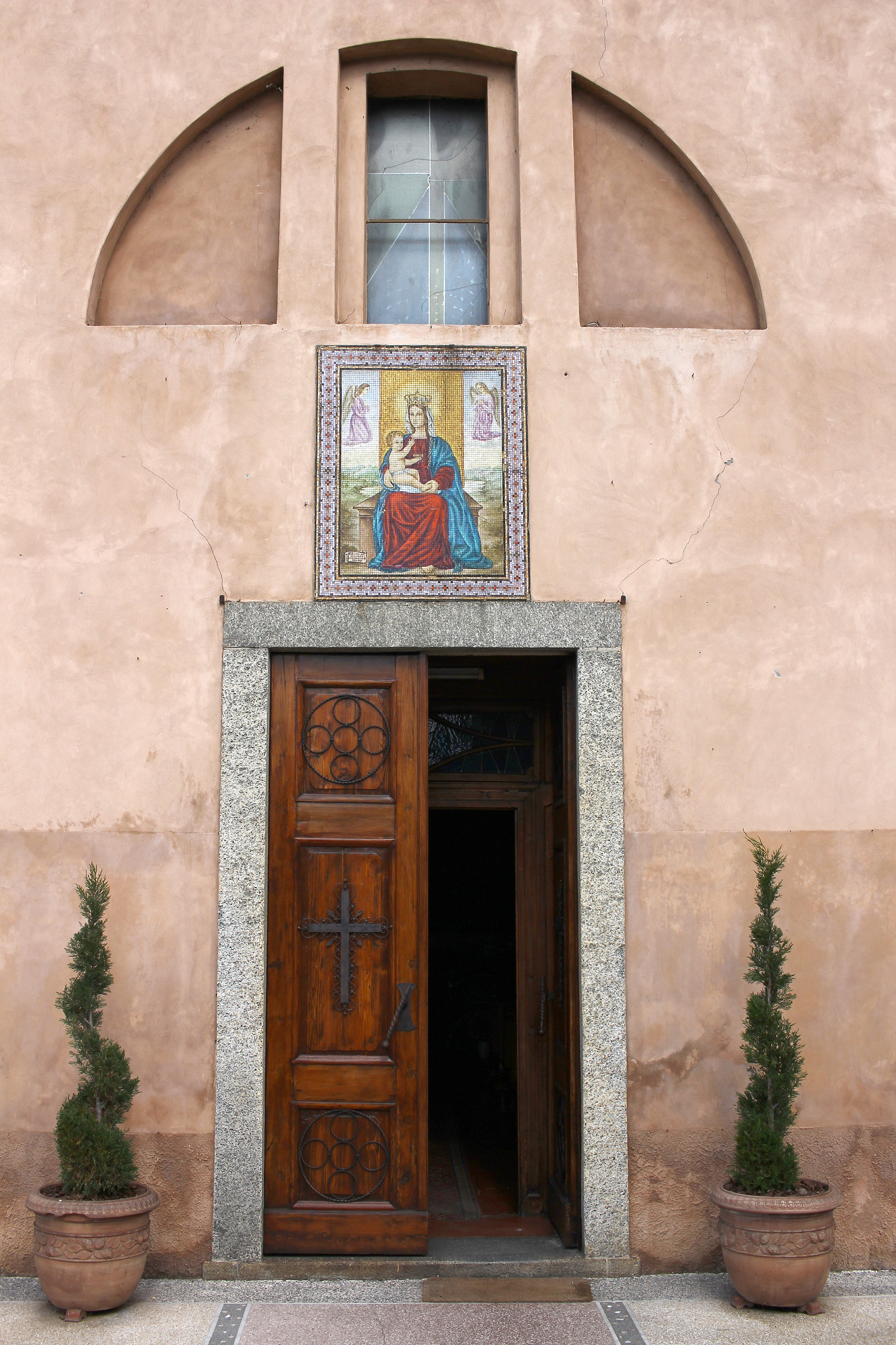 L'icona originale (Madonna con Bambino) é del sec XV ed é tuttora presente all'interno (affresco) al centro della navata dietro l'altare. La sua riproduzione sulla facciata esterna é del 1984, opera di C. Tenca in ceramica dipinta.