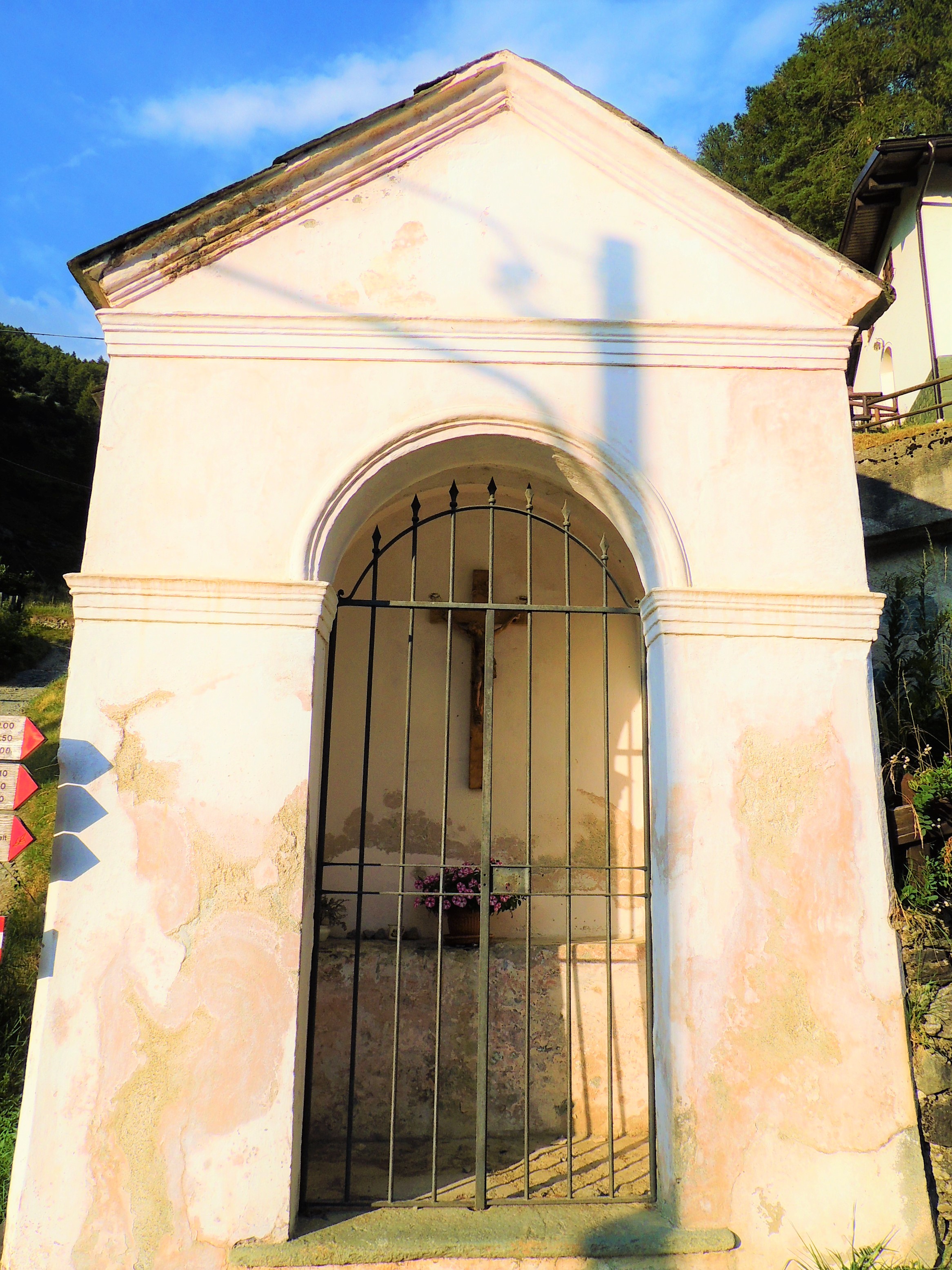 La santella è di notevoli dimensioni quindi localmente è denominata "Il Santelon", si trova a 1280 metri di quota all'imbocco della strada sterrata in notevole salita che porta ai ruderi dell'antico Castello di San Pietro e della "Gesa Rota" - La Chiesa Rotta