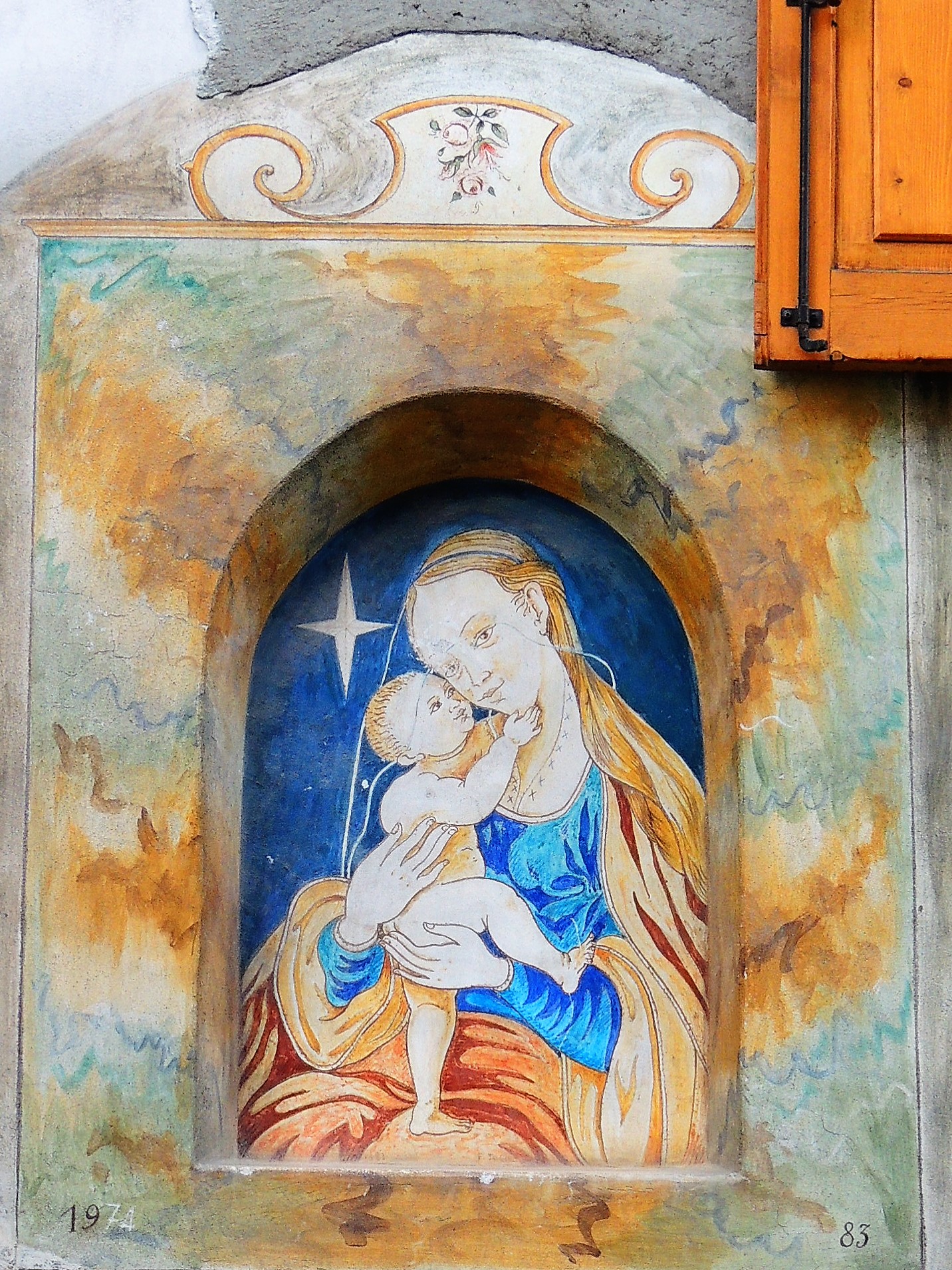 L'affresco della Madonna con Bambino sul muro dell'antica casa a Bormio