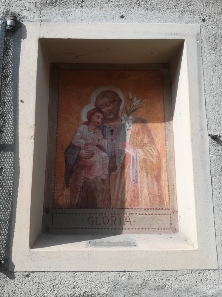 L'affresco rappresenta San Giuseppe che tiene con una mano un giglio bianco, mentre con l'altra regge il Bambino Gesù. Dipinto da Casari a metà degli anni '20.