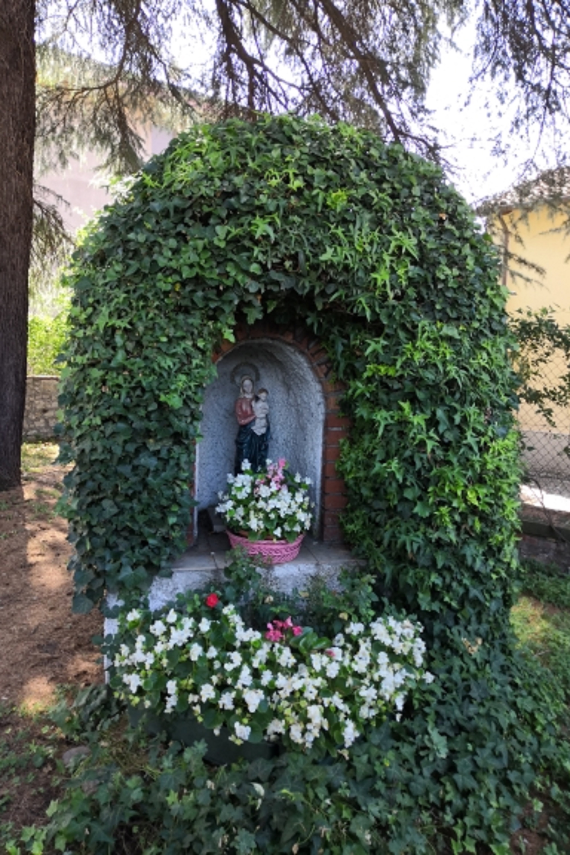In mezzo al verde sorge una nicchia con una Madonnina,
