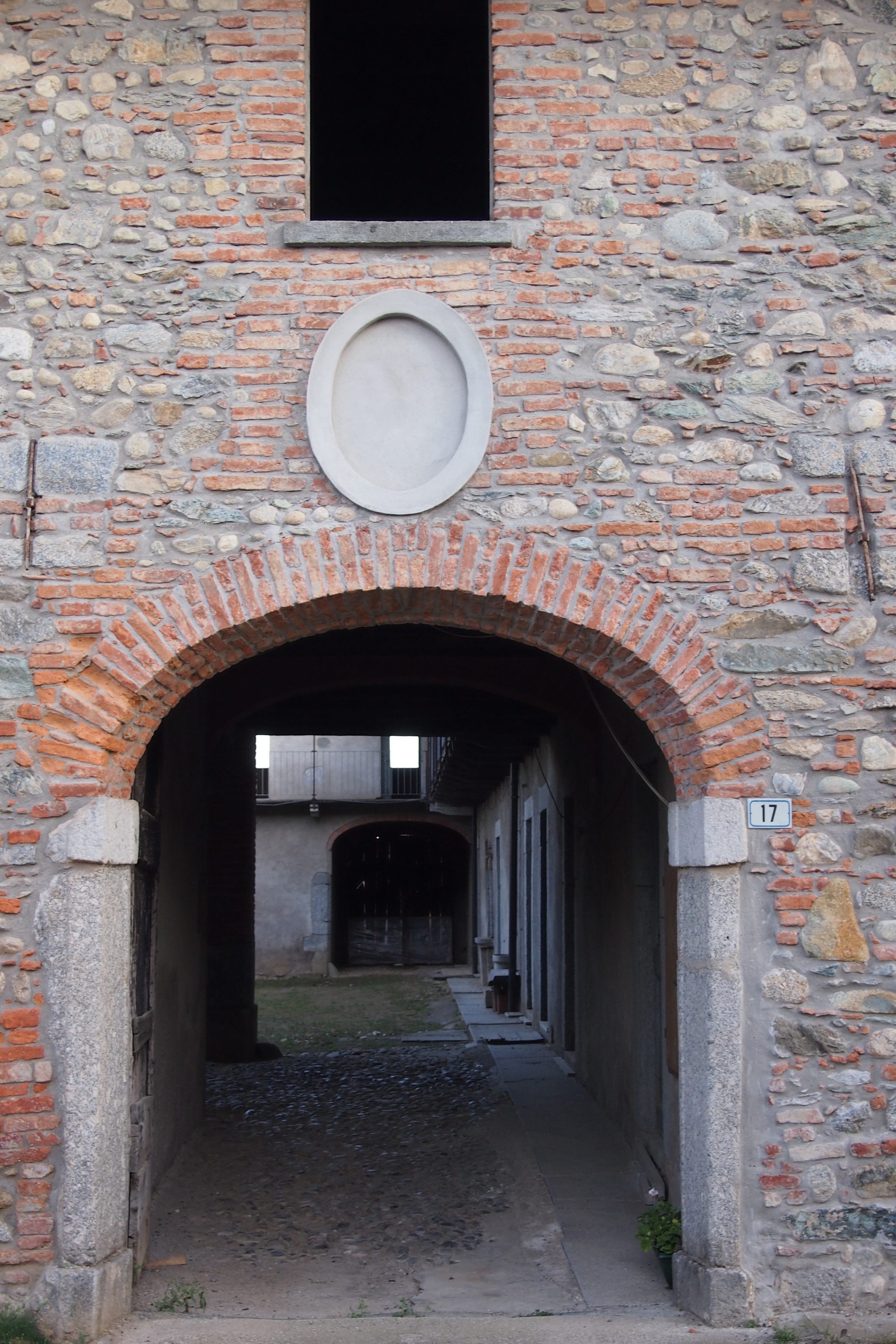Nicchia vuota sopra l'ingresso di una cascina in buono stato, ma apparentemente disabitata. Unico segno di vita, la presenza di un pollaio in uno dei locali al piano terra.