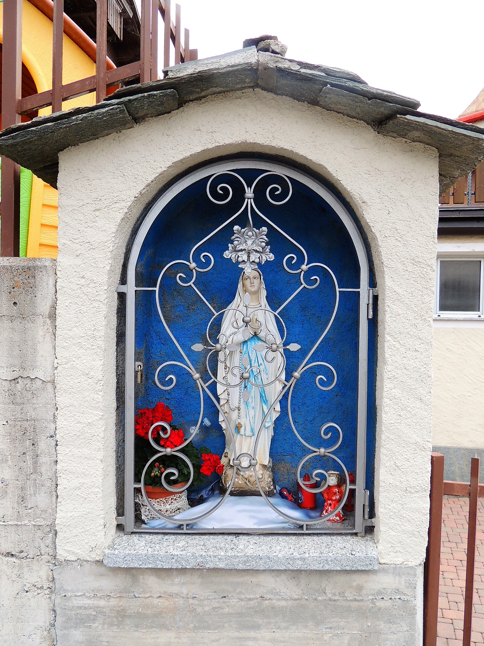 La piccola santella è parte del muro di recinzione di un edificio