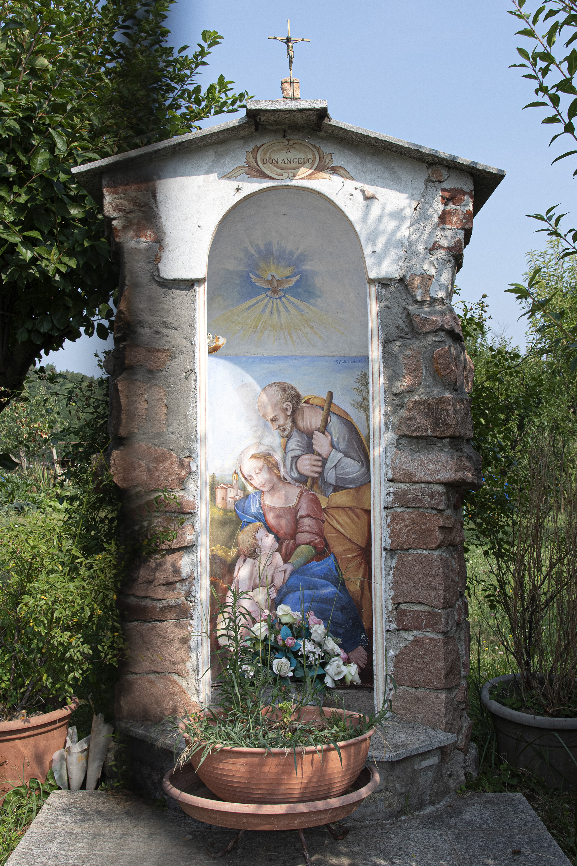 Edicola in un prato, sulla strada dietro una rete metallica