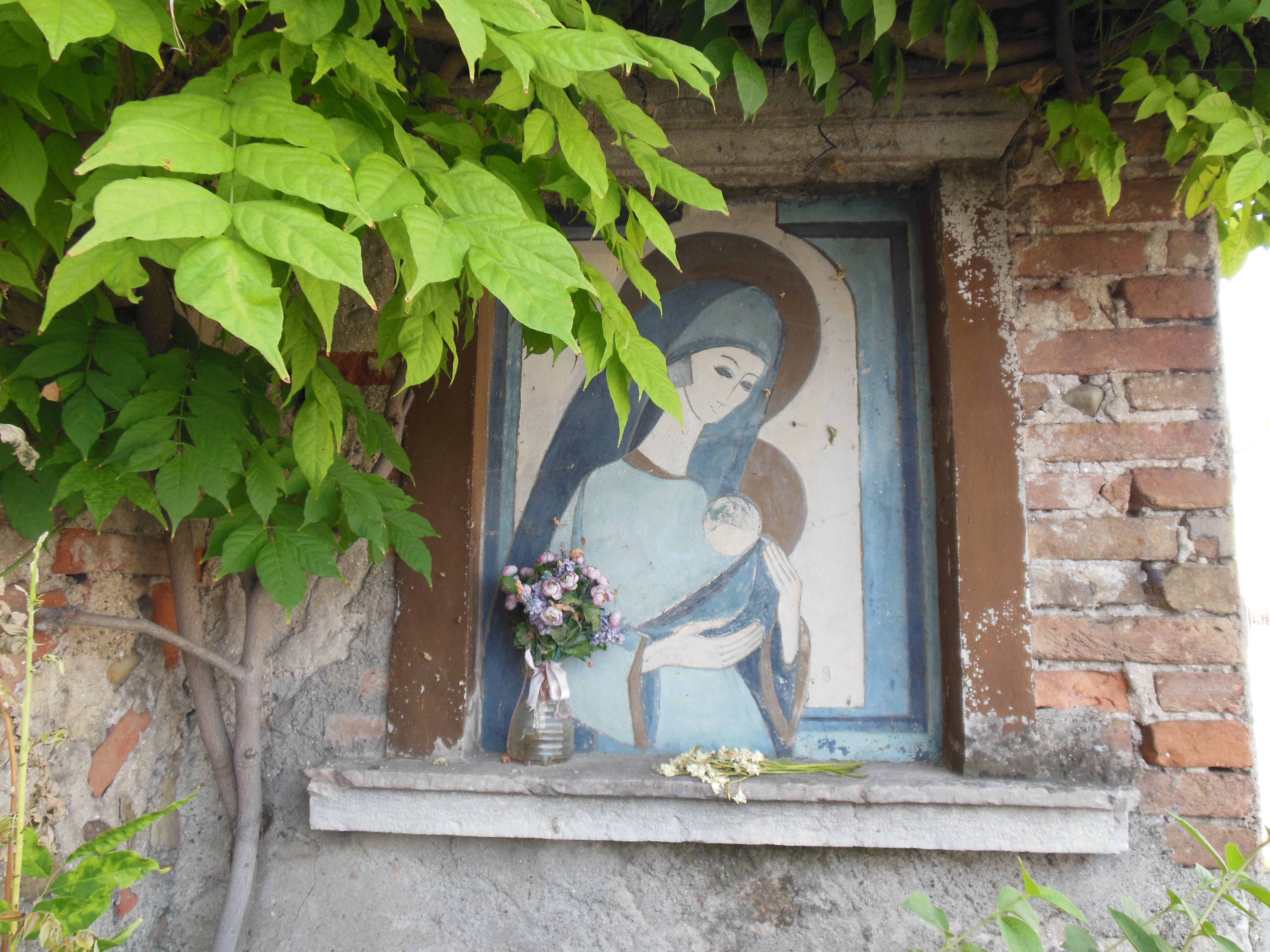 Santella dipinta nel 1968, raffigurante una Madonna con bambino realizzata dall'artista gussaghese Candida Gottardi. Quest'opera sostituisce un precedente dipinto murale dell'ante-guerra fortemente deteriorato, raffigurante un Sant'Antonio.