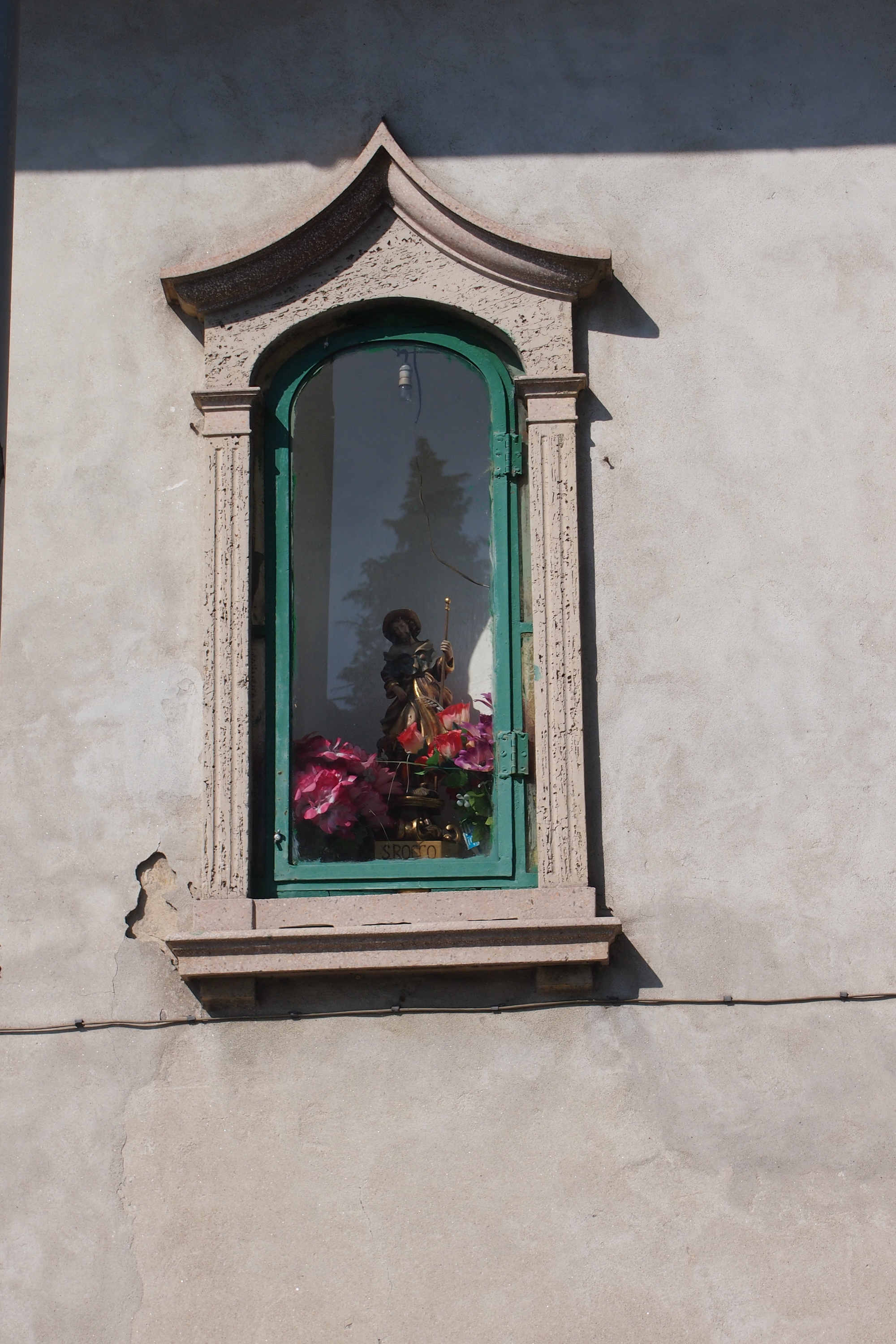 Statua di San Rocco, co-patrono di Lurago d'Erba, sul muro dell'omonima cascina che ha dato il nome a questa zona del paese.