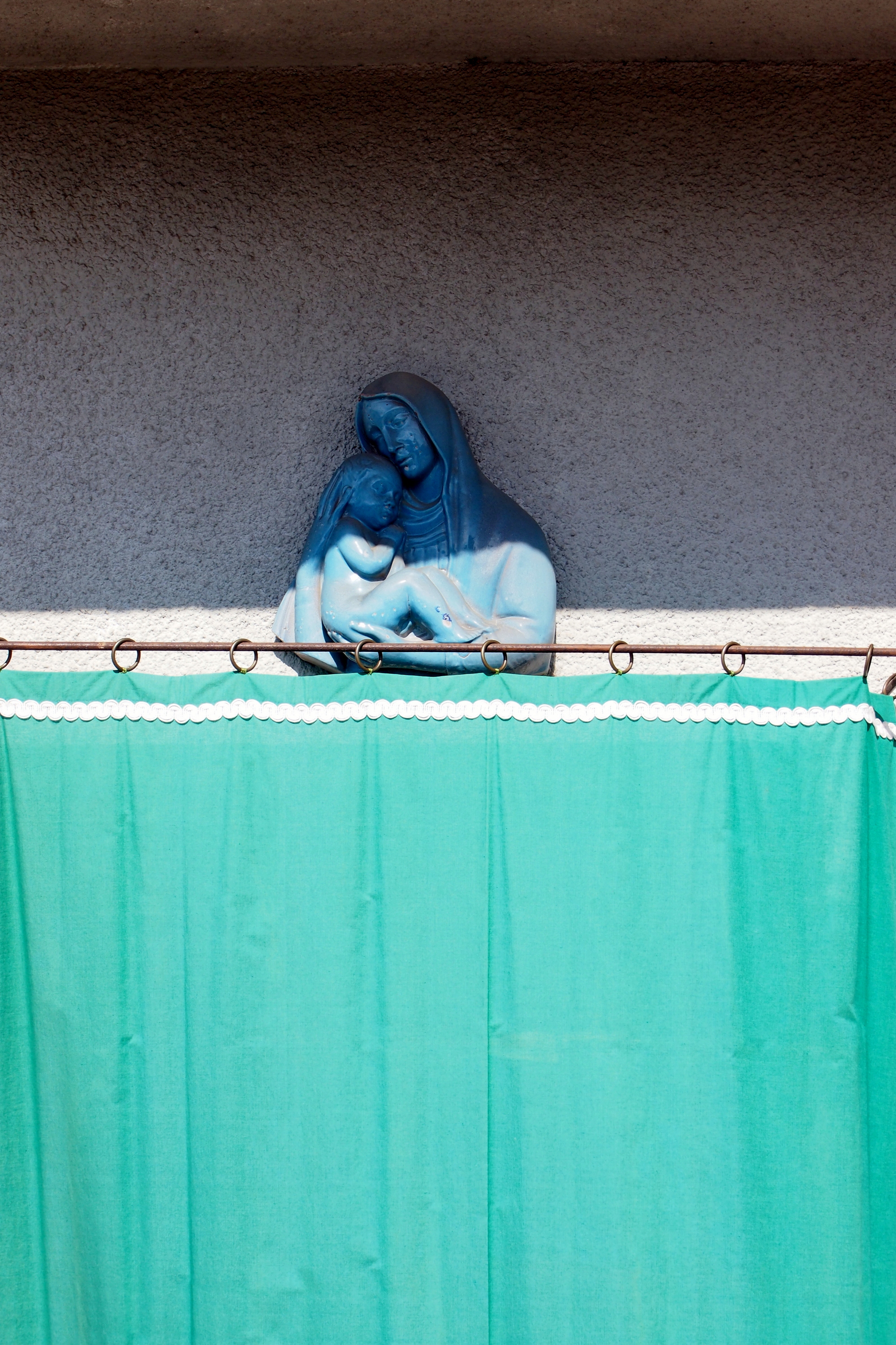 Madonna blu su tenda verde