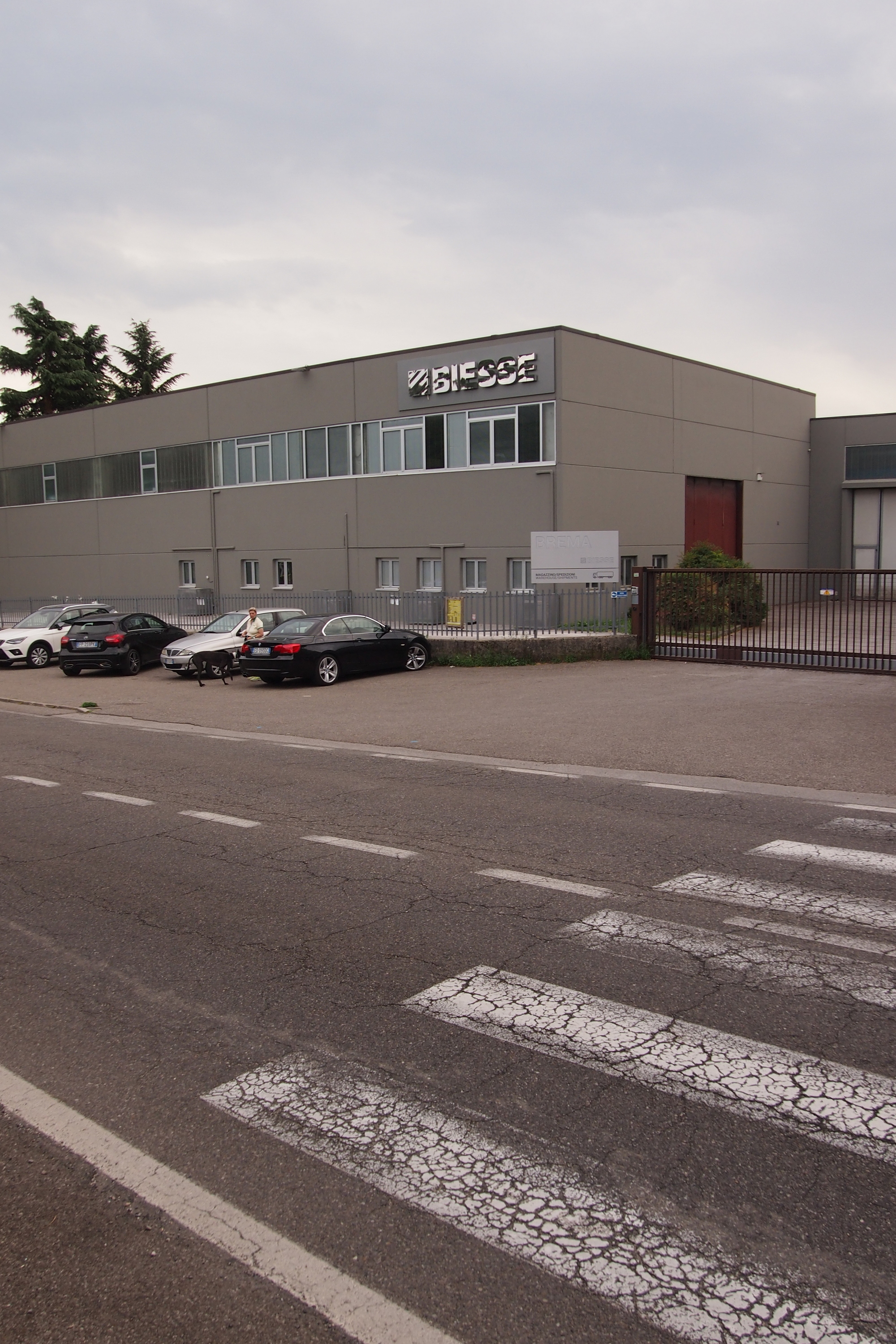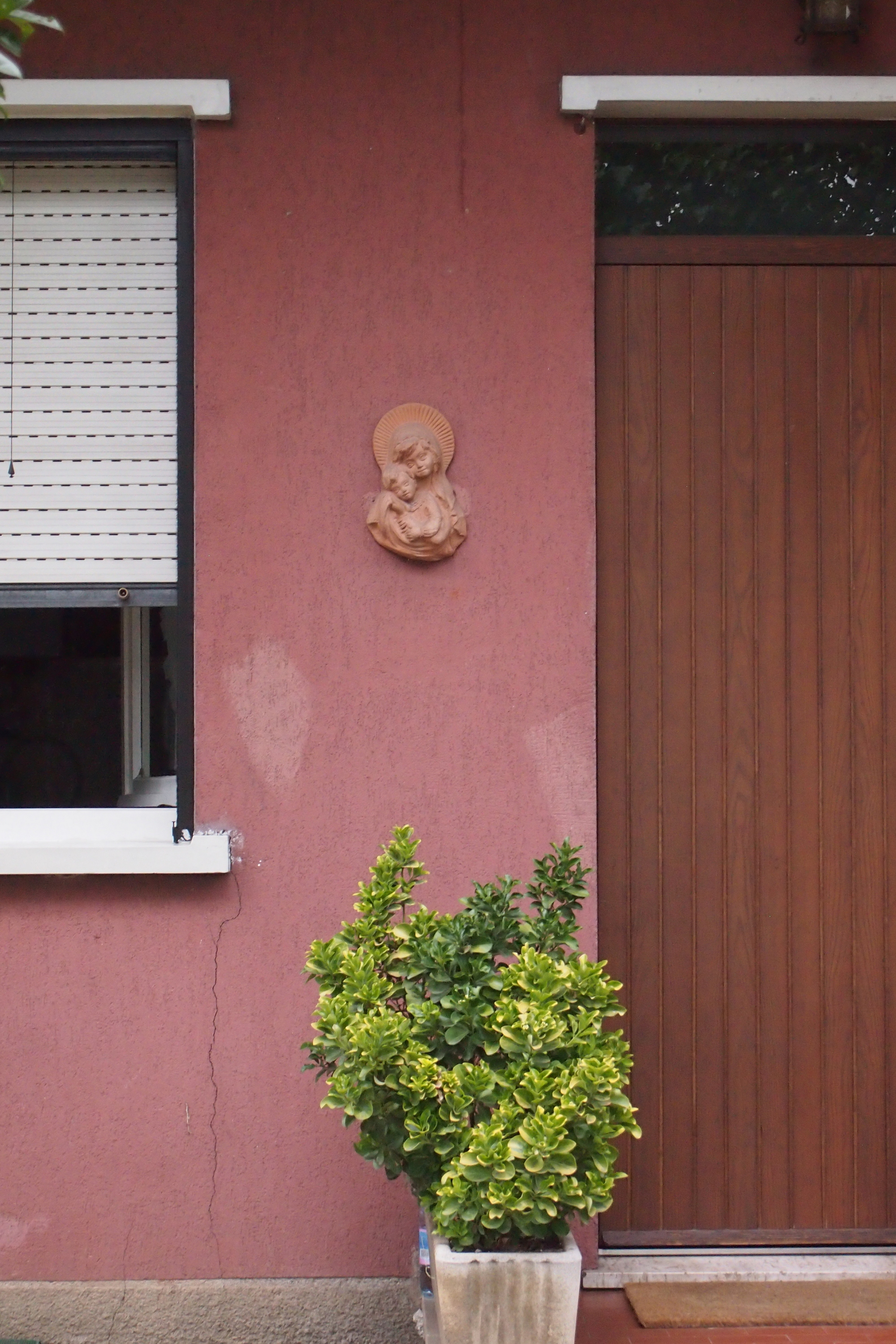 Piccola Madonna appesa di fianco alla porta di un'abitazione, guarda verso un'azienda che produce macchine utensili.