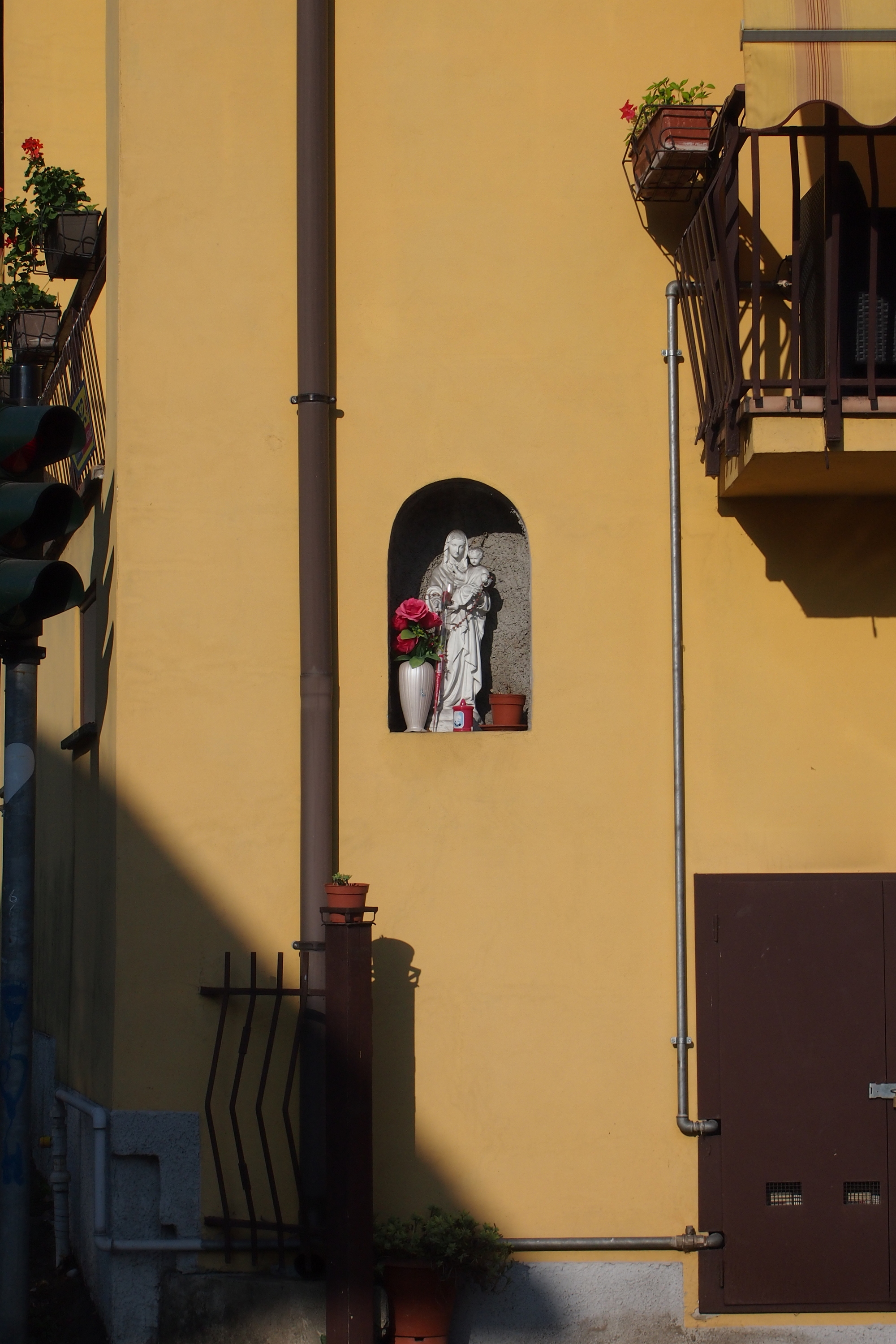 Nicchia con Madonna con Bambino in prossimità di un semaforo a Monticello Brianza.
