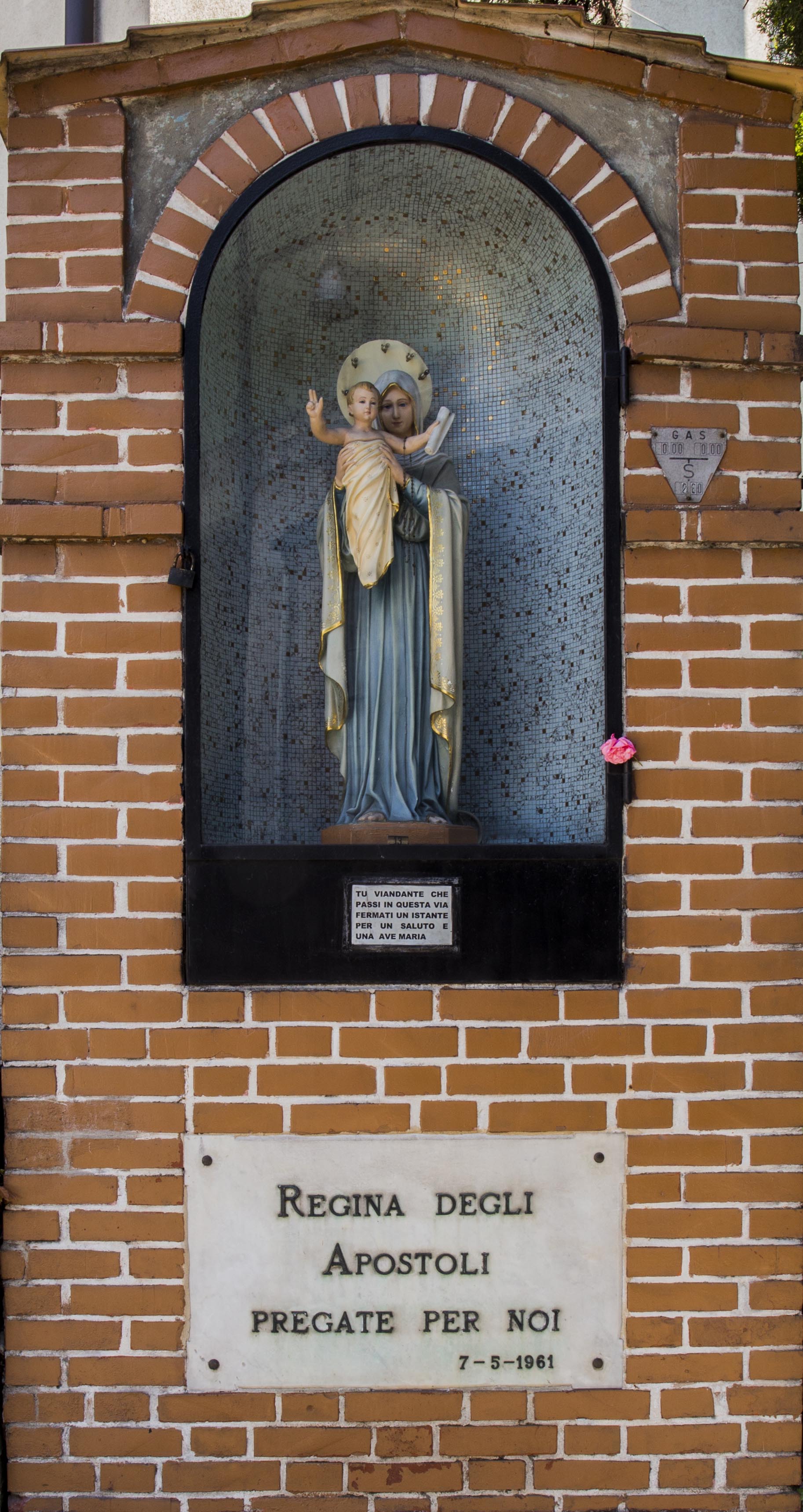 L’edicola fu realizzata il 7 maggio 1961 e posta sul muro di cinta del complesso residenziale della Cooperativa Armando Diaz.