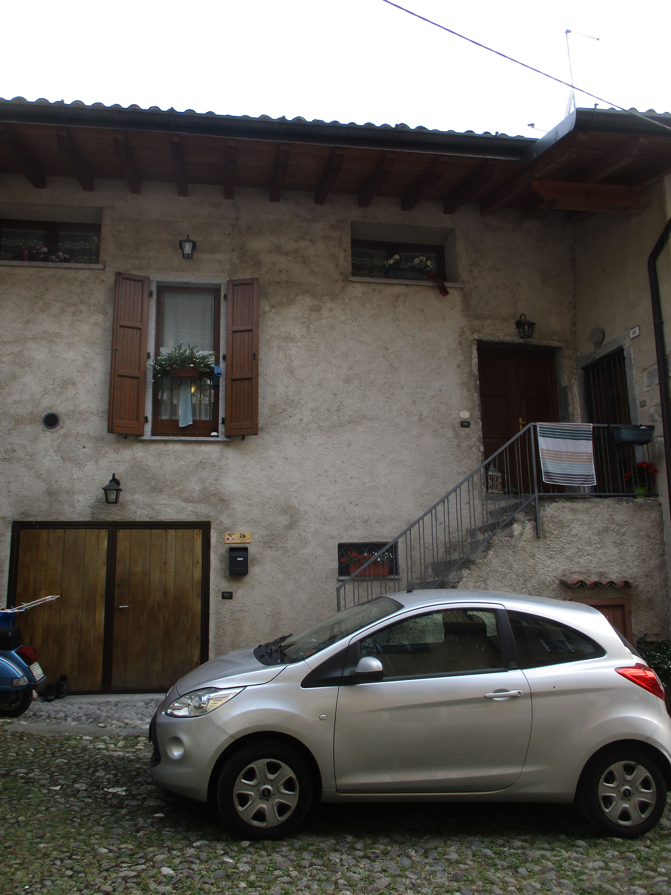 Affresco sulla facciata di una casa nel borgo storico di Crone. Raffigura la Madonna che appare sull’acqua ad un devoto che sembra offrirle del pane. La scena è simile a quella già vista nell’affresco della Madonna del Castello di Lemprato, poco lontano da qui. Con tutta probabilità il quadro si riferisce a un evento miracoloso di cui ad oggi non abbiamo notizie.