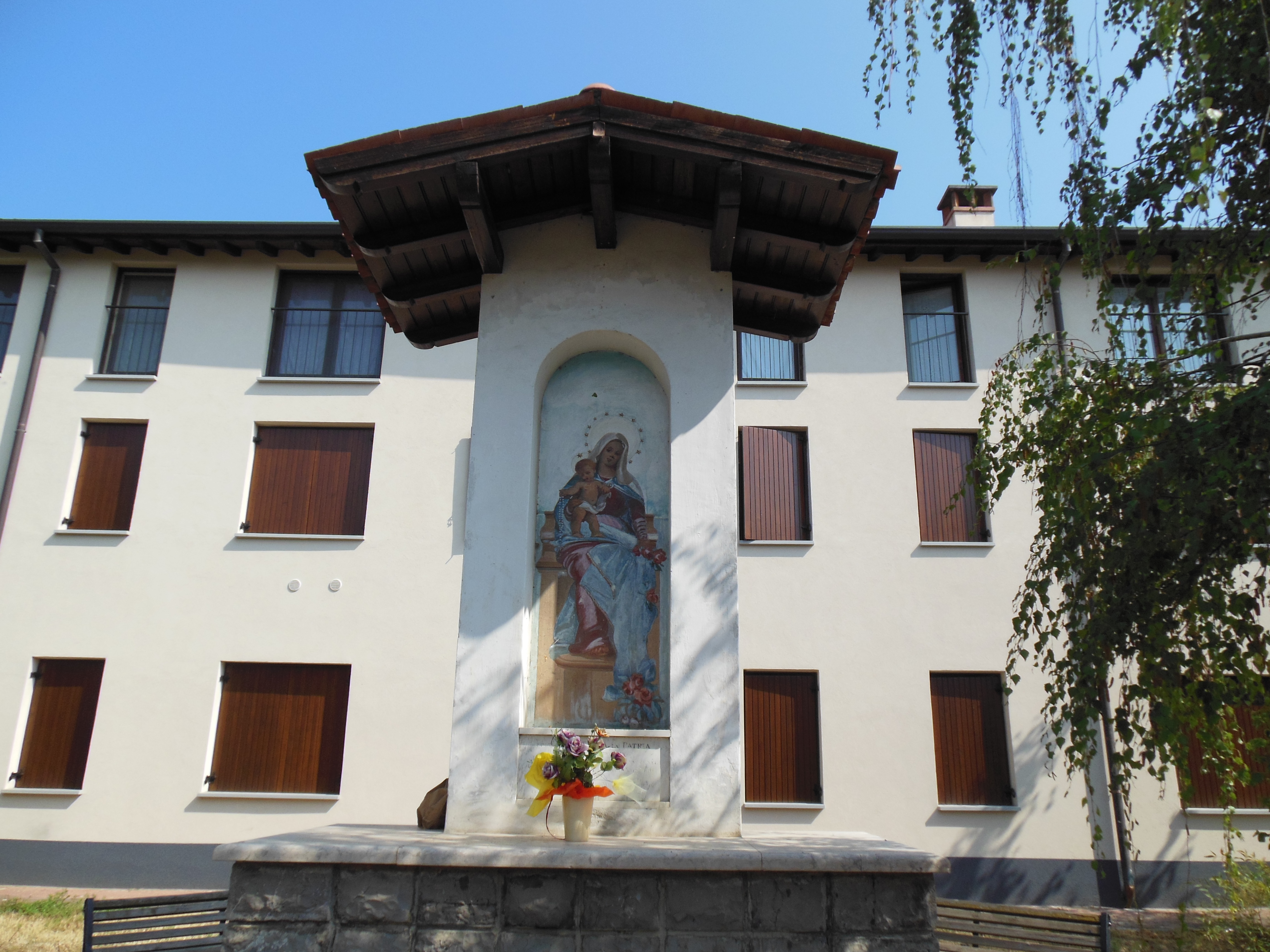 La santella della Madonna si trova al centro di una piazzetta dedicata ai caduti della Seconda Guerra Mondiale. La dedicazine si evince dalla presenza del rosario e delle rose. Restaurata qualche anno fa.