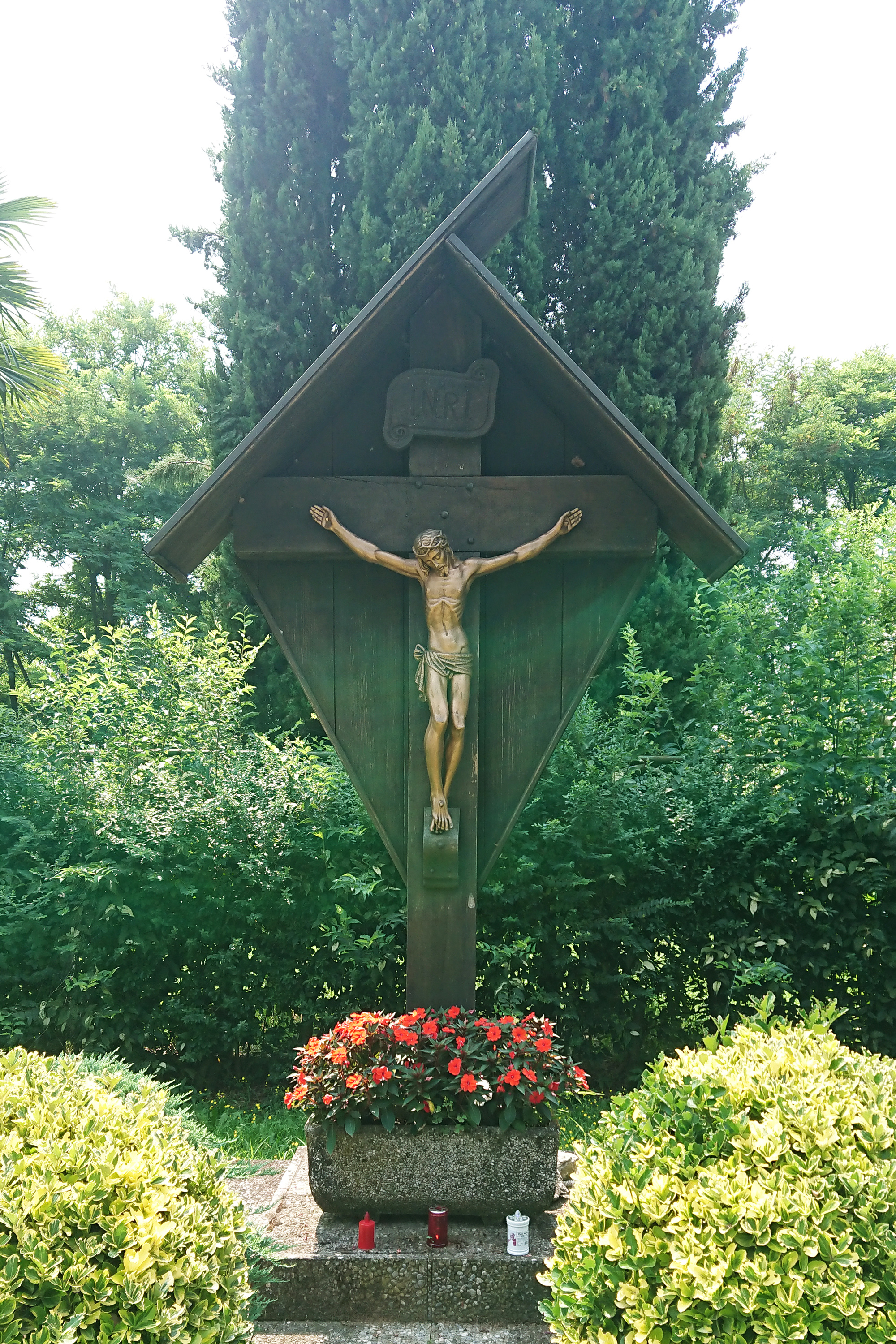 Gesù crocifisso in mezzo al verde