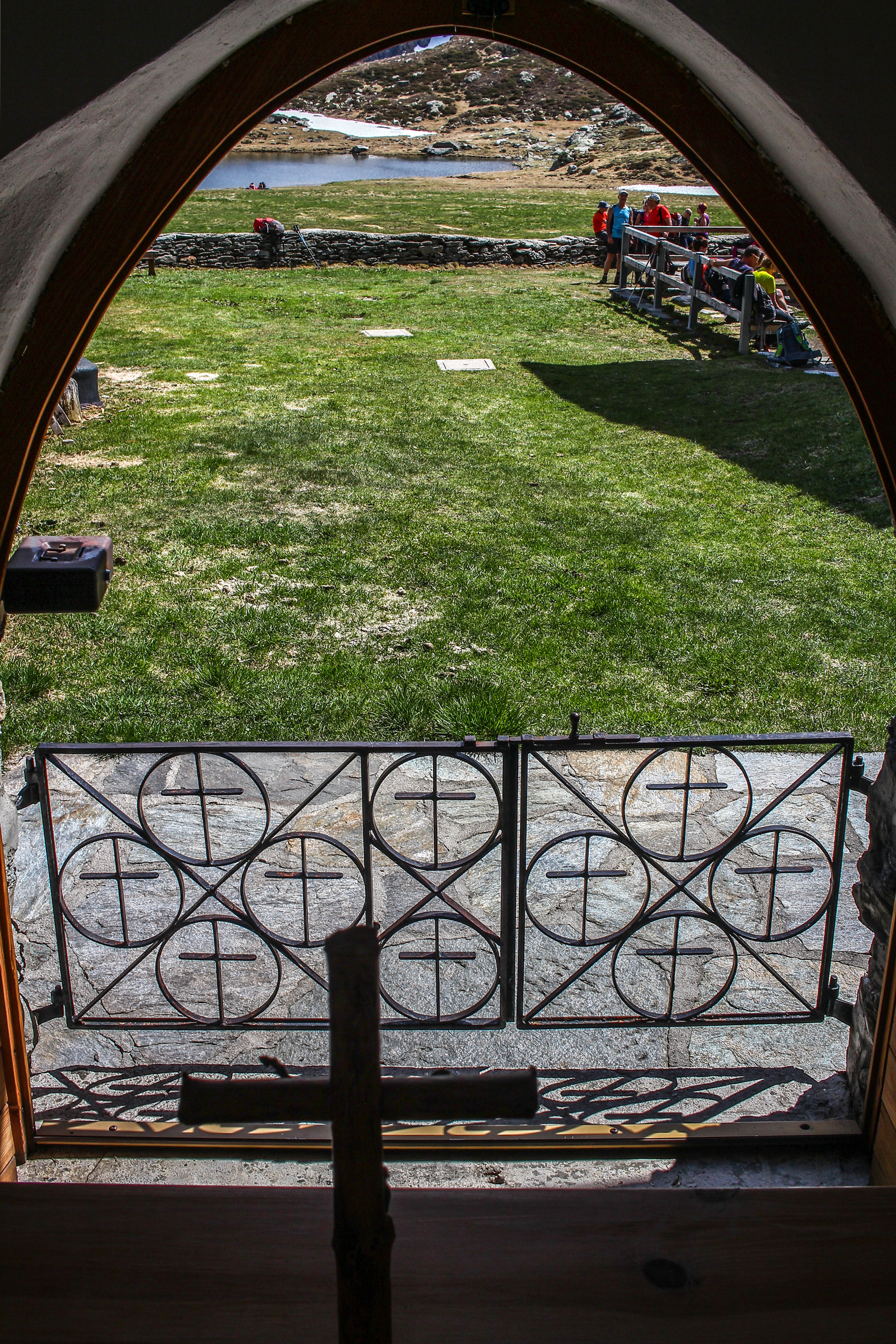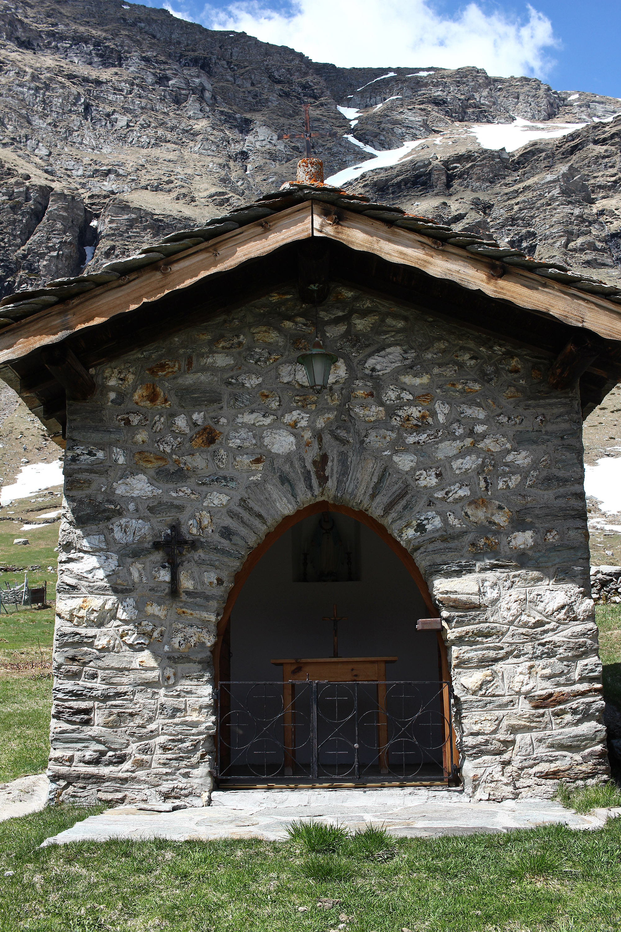 All'interno di un cappellina, accanto al rifugio Chiavenna, all'alpe Angeloga m 2044, di fronte al Lago di Angeloga e al Pizzo Stella.