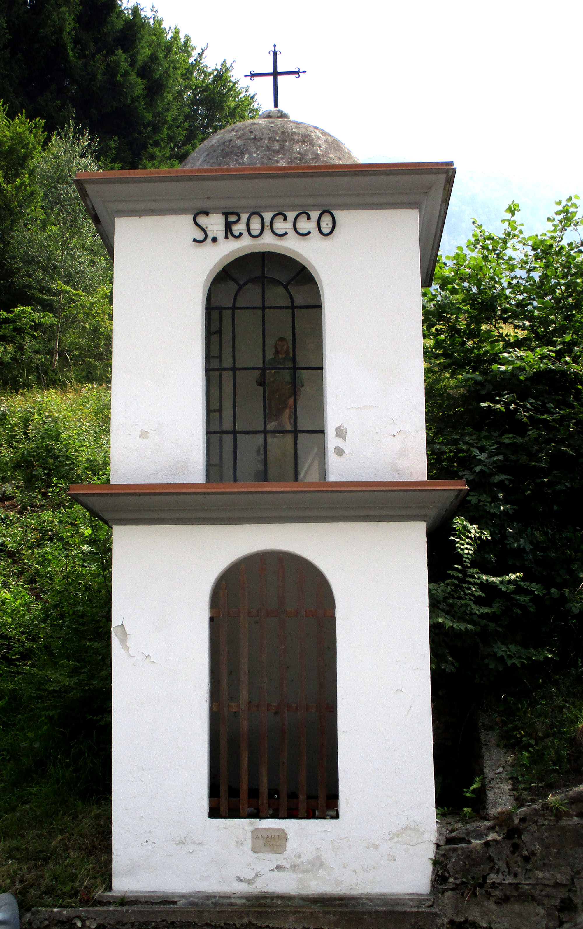 Curiosa edicola a due livelli. Quello superiore è occupato da una immagine di S. Rocco, titolare dell’edicola. A lui è intitolato anche il passo (m 1020 slm) che mette in comunicazione la Val Sabbia con la Valvestino.