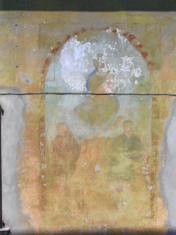 A pochi passi da dove si trovavano le Porte della Valle Trompia, sul muro della casa al civico 20, è presente questo affresco molto rovinato con al centro l'immagine della Madonna con il Bambino e ai suoi piedi tre figure di santi resi irriconoscibili dalle intemperie. La pittura murale potrebbe essere dell'inizio del XIX secolo. Si sa che alcuni anni dopo la battaglia di Carcina del 1797, tra i valtrumplini e i giacobini napoleonici, furono fatti alcuni affresci allusivi della battaglia su alcune case situate proprio nei pressi delle Porte della Valle.