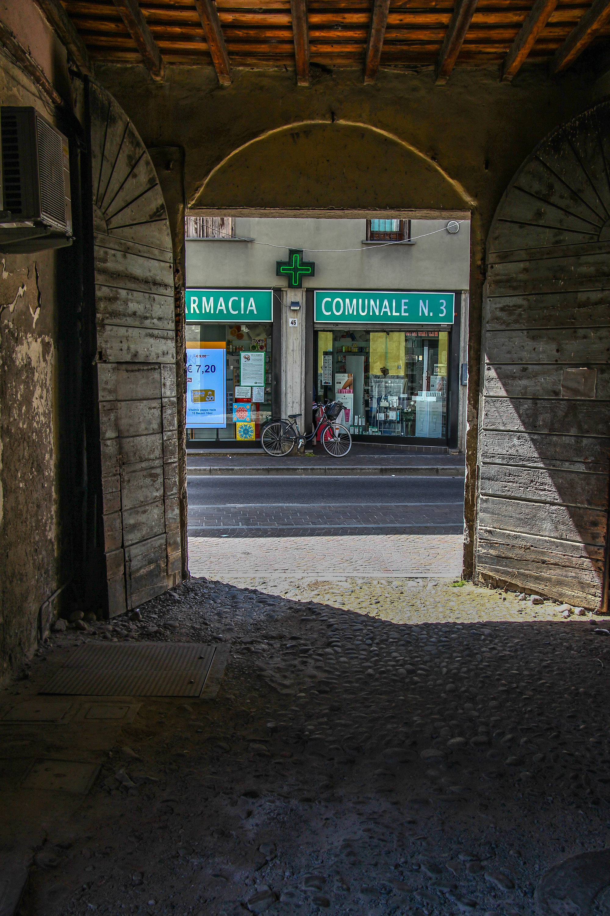 Il quadro si trova all'interno di un portico, ben visibile da chi passa sulla strada.