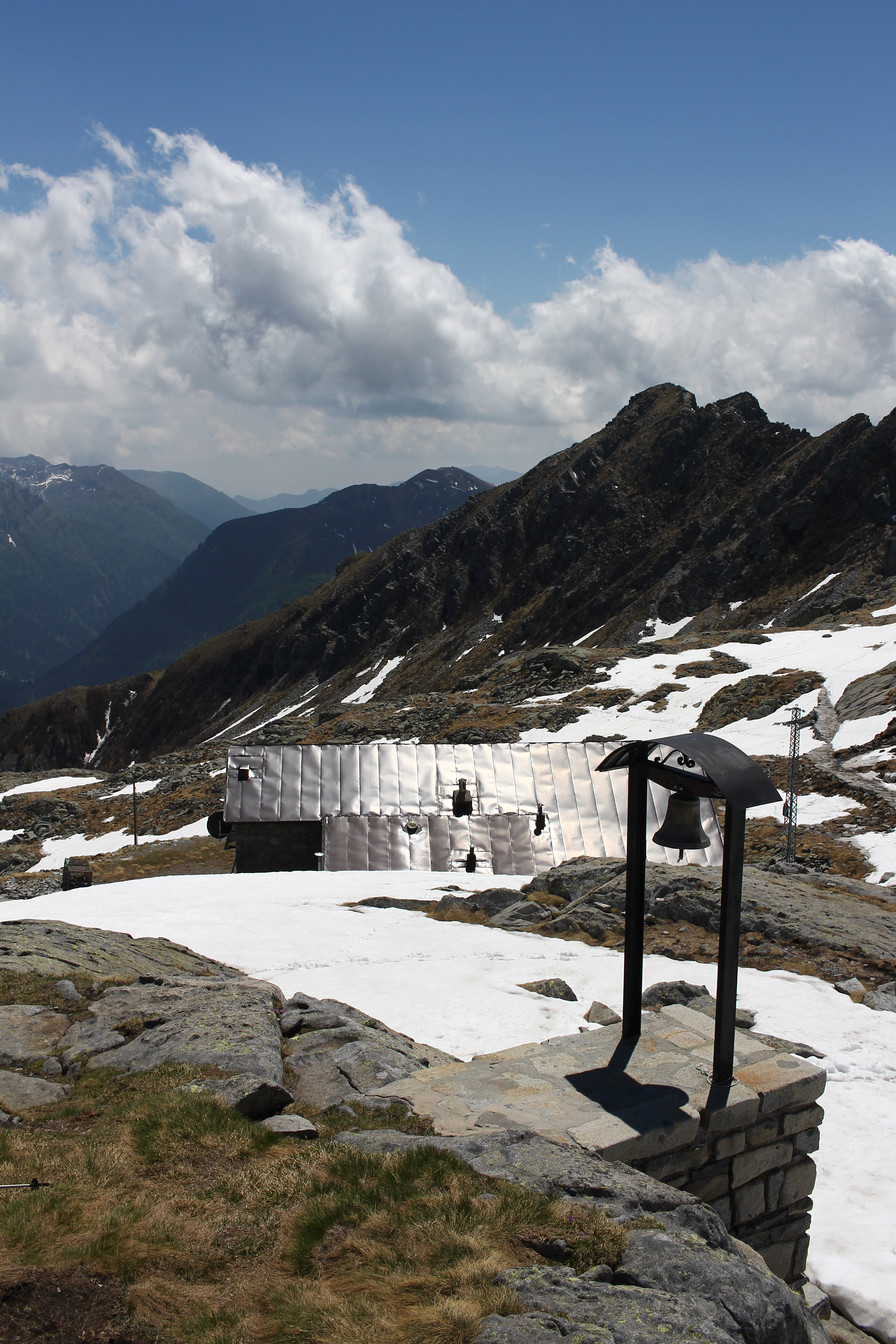 La vista è sulla sottostante casa dei guardiani della diga (in passato parzialmente utilizzata come rifugio Gabriele Rosa) e sulla valle del Gaver.