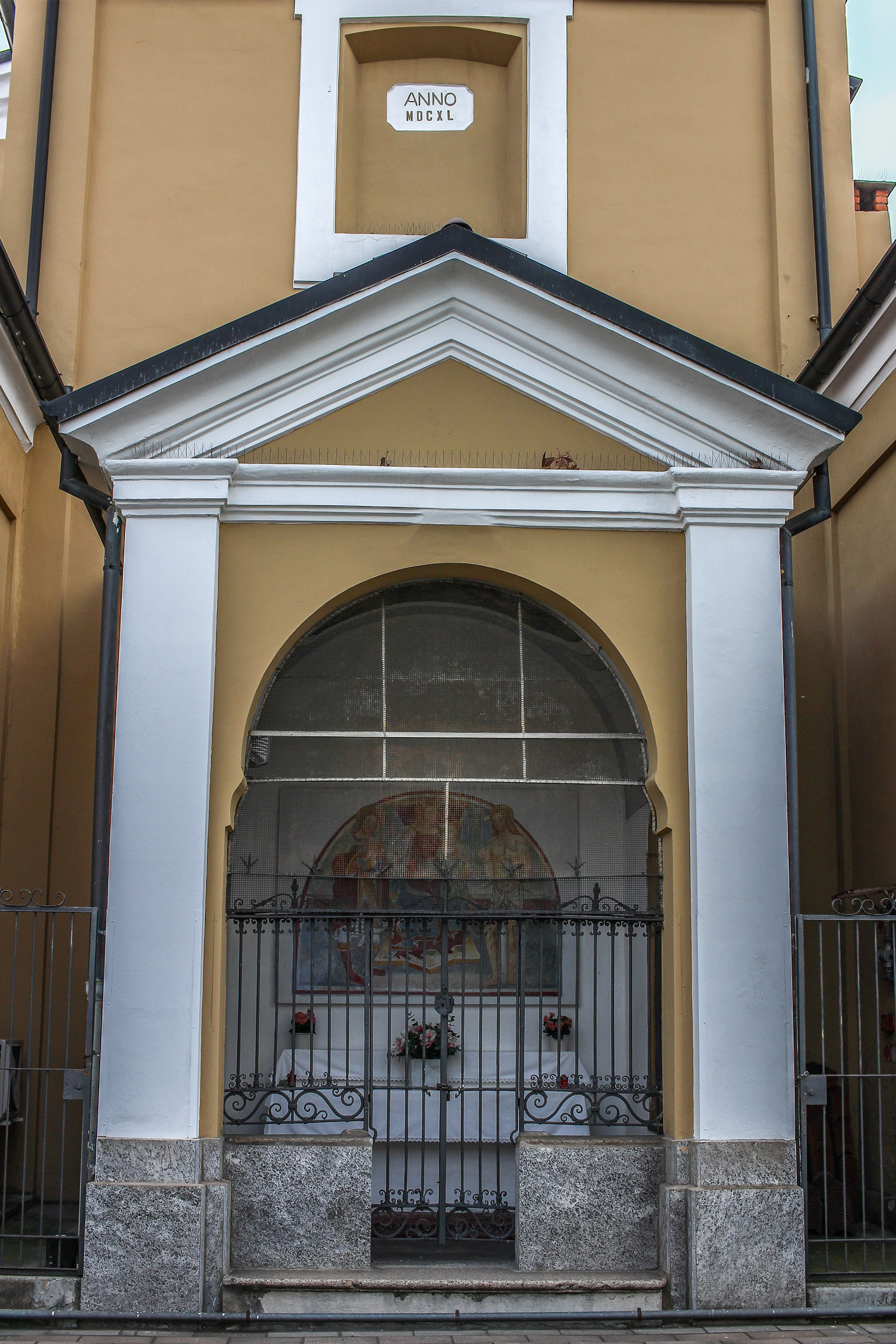 L'immagine di oggi é del 2018 e riproduce a stampa su un pannello in PVC un affresco trovato in una cappella privata a Premia (Val d'Ossola) che ritrae la Madonna col Bambino, S. Rocco e S. Sebastiano, come era nell'affresco originale (descritto in un relazione di visita pastorale del 1597), ormai cancellato da qualche decennio. Dato che entrambi i santi sono venerati come protettori dalla peste, si può ipotizzare che l'affresco originale risalisse all'epoca successiva alla cosiddetta peste di S. Carlo, che flagellò il milanese nel 1576-77.