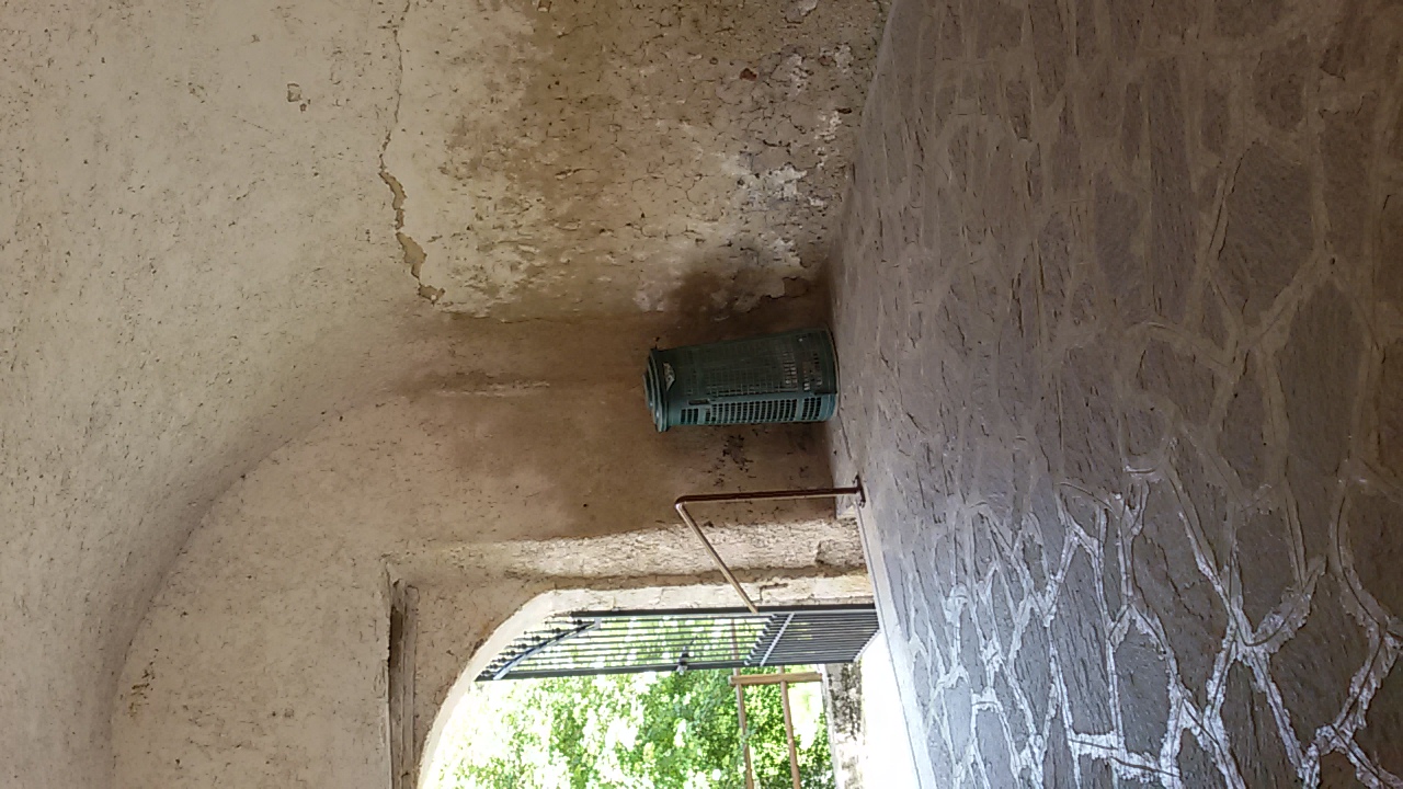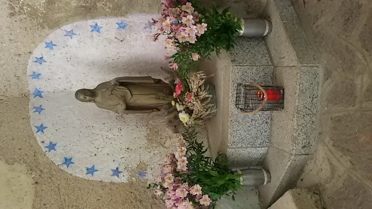Statua della Madonna della misericordia posta sotto un arco che porta al santuario di Conche.
