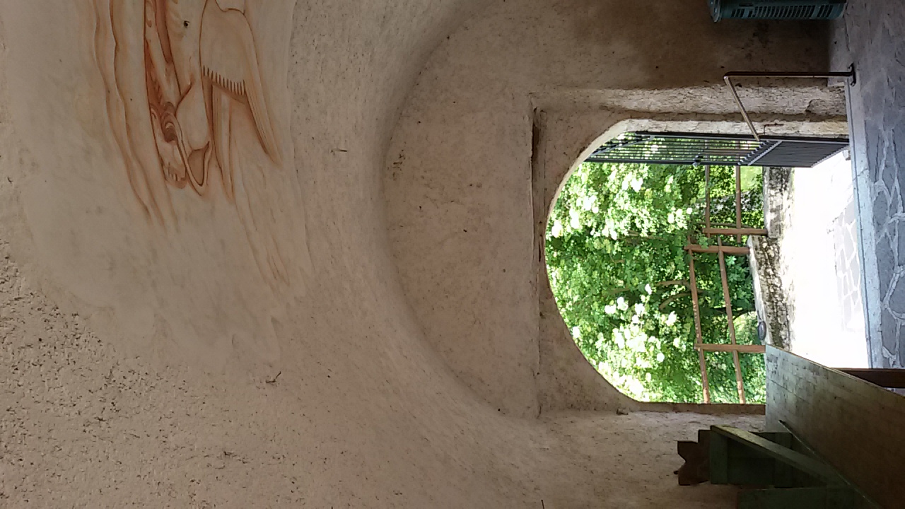 Affresco della Madonna della misericordia posto sotto l'arco che porta al santuario di Conche.