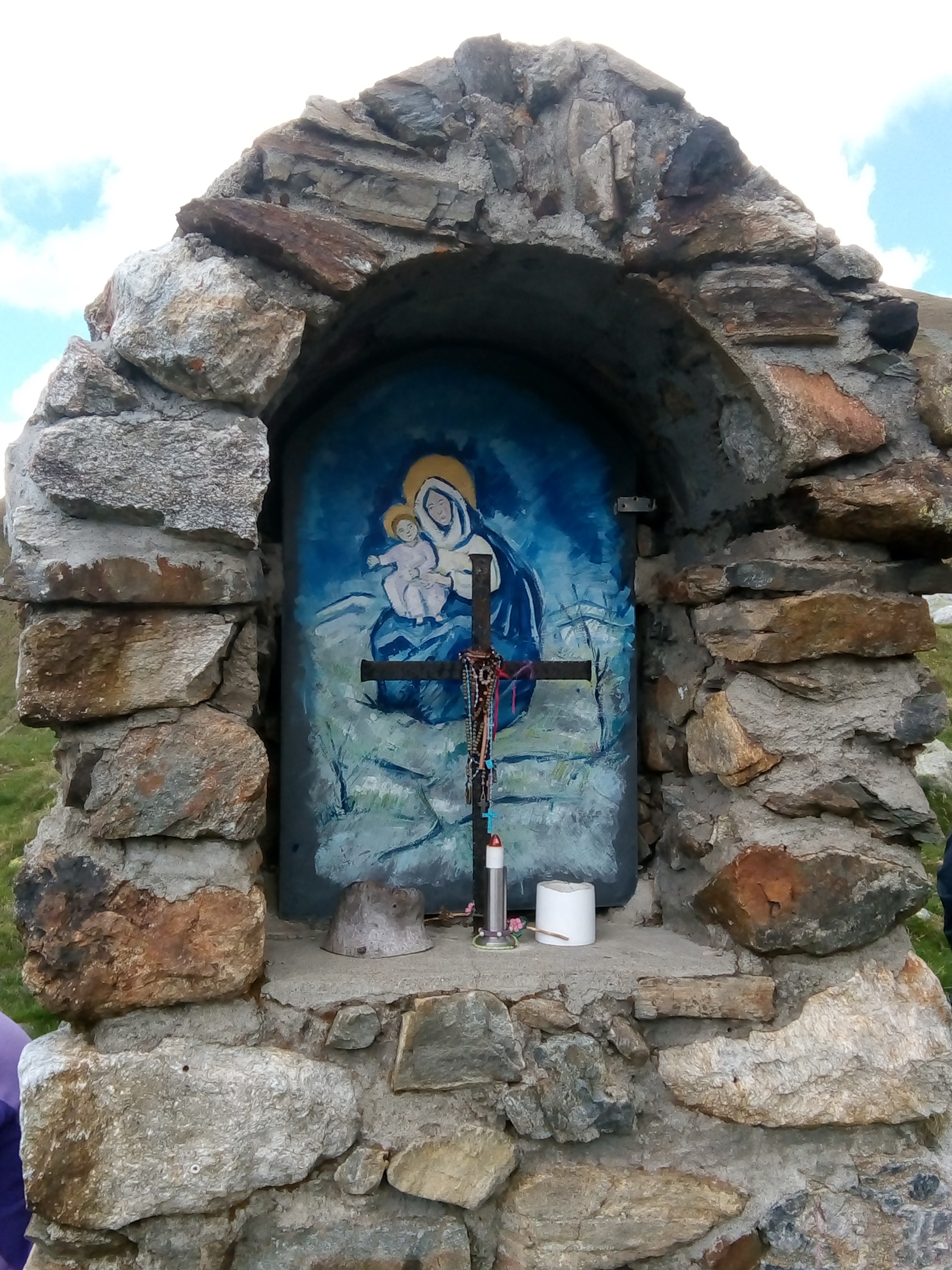 L'edicola votiva ricorda una Madonnina di 100 KG che è stata collocata in fondo al Lago Moro a tutela del luogo incantevole.