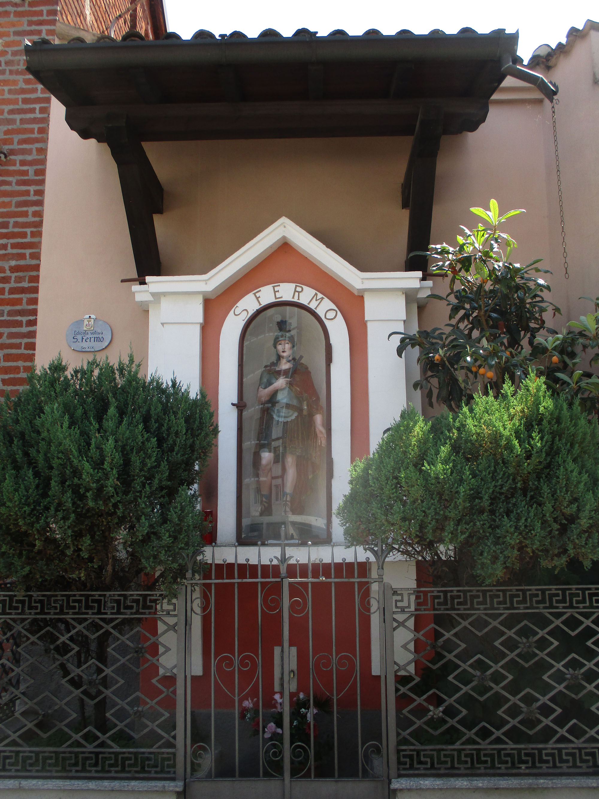 Accanto all’ingresso della Cascina S. Fermo, di origine seicentesca. La statua riproduce quella del santo nella basilica a lui dedicata a S. fermo della Battaglia.