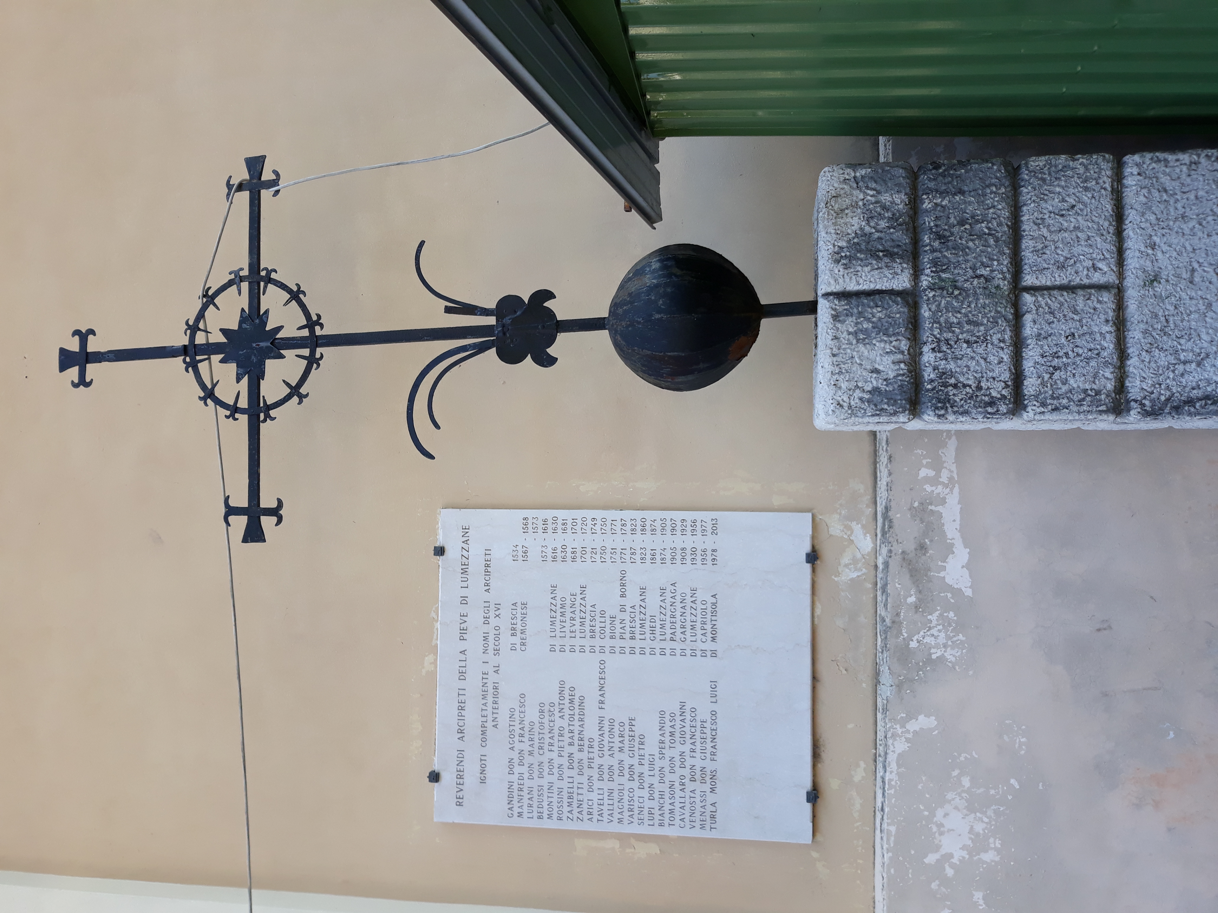 Accanto alla croce c'è una targa con i nomi degli arcipreti della parrocchia di Pieve fino al XVI secolo.