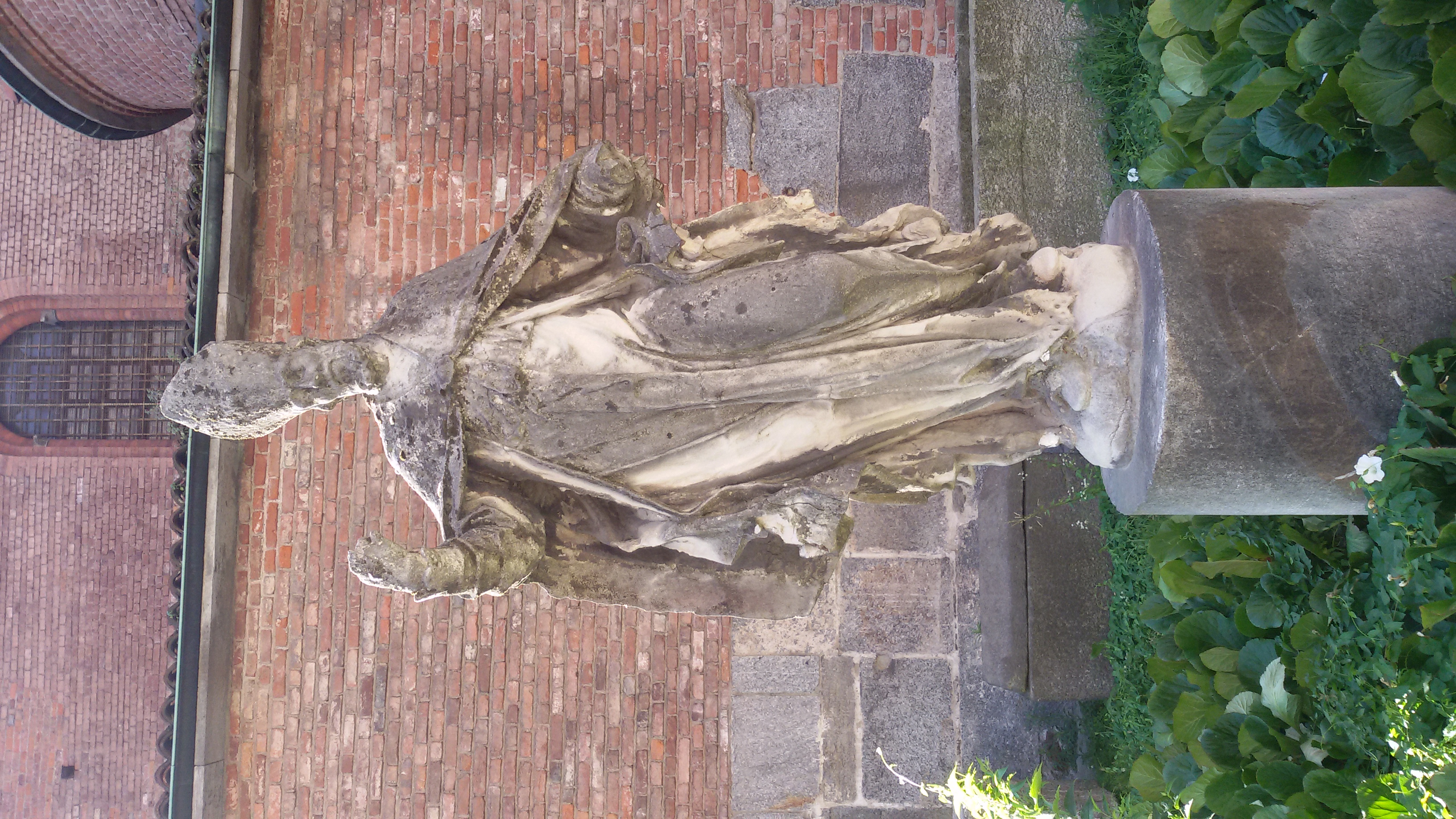Questa statua di Sant'Ambrogio si trova vicino alla Basilica di San Nazaro in Brolo. Probabilmente è posta qui perché il vescovo di Milano scoprì una tomba sconosciuta di due martiri negli orti fuori città (Nazaro e Celso). Il corpo del primo era intatto e fu trasportato in una chiesa davanti a Porta Romana dove sorse la basilica a suo nome.