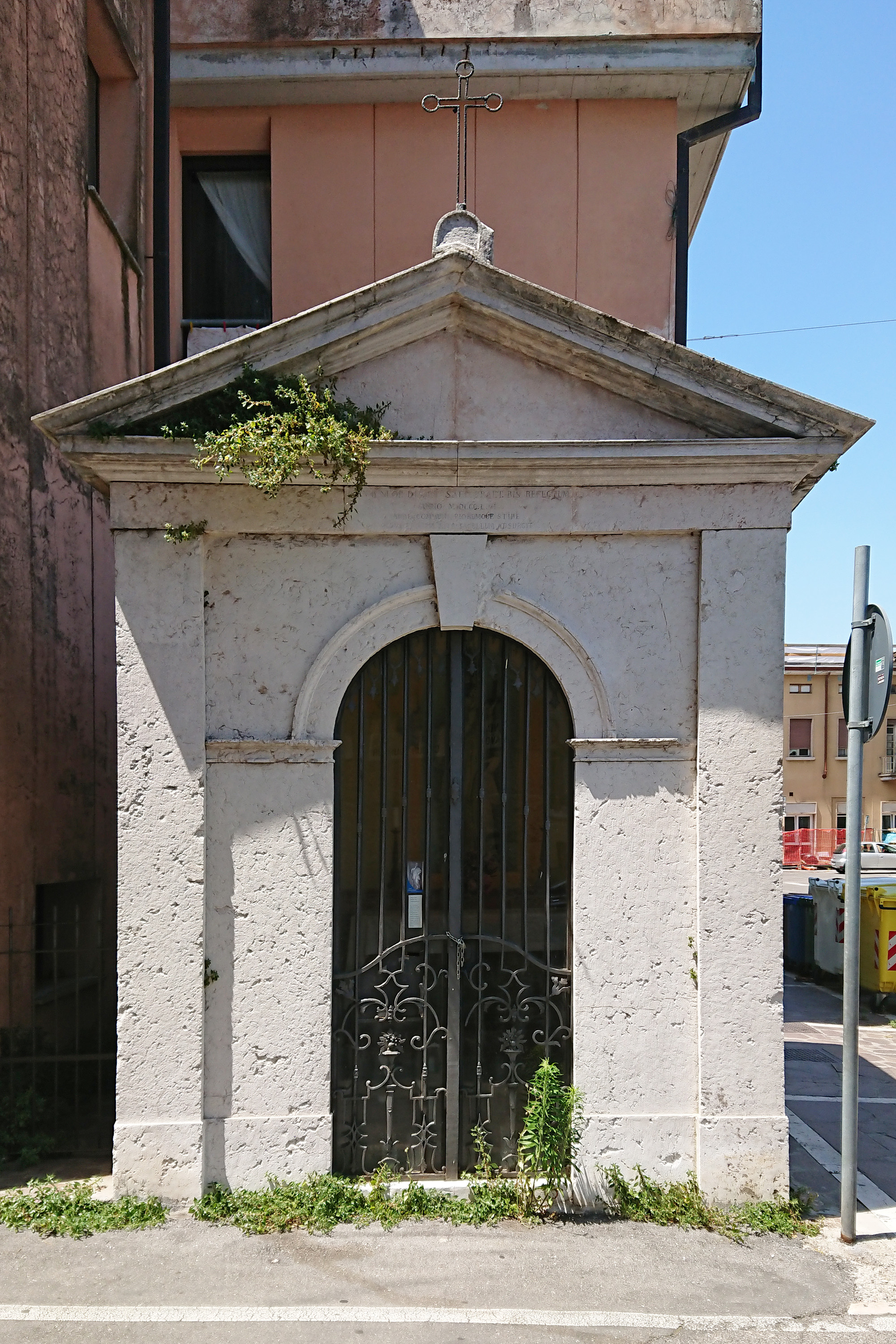 Come recita la targa a lato dell'edicola: "Cappella dedicata a San Giovanni Nepomuceno, nel XVIII secolo la lega dei barcaioli di Ostiglia eresse questo saccello votivo al loro patrono. La statua è opera pregevole dello scultore Speranza"