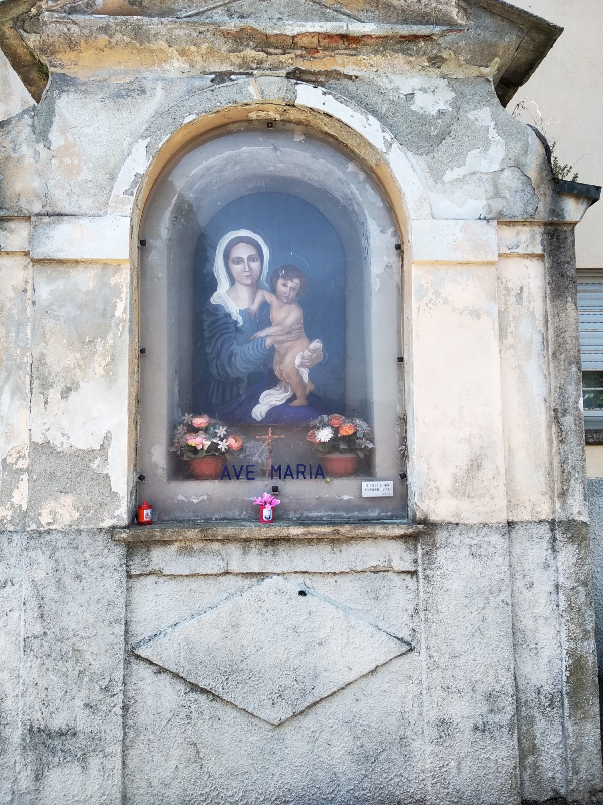 Una bella edicola in una via quasi nascosta che finisce direttamente dentro al Parco Nord. Purtroppo quello che per ora vede Maria è un cantiere, e non il rigoglioso Parco