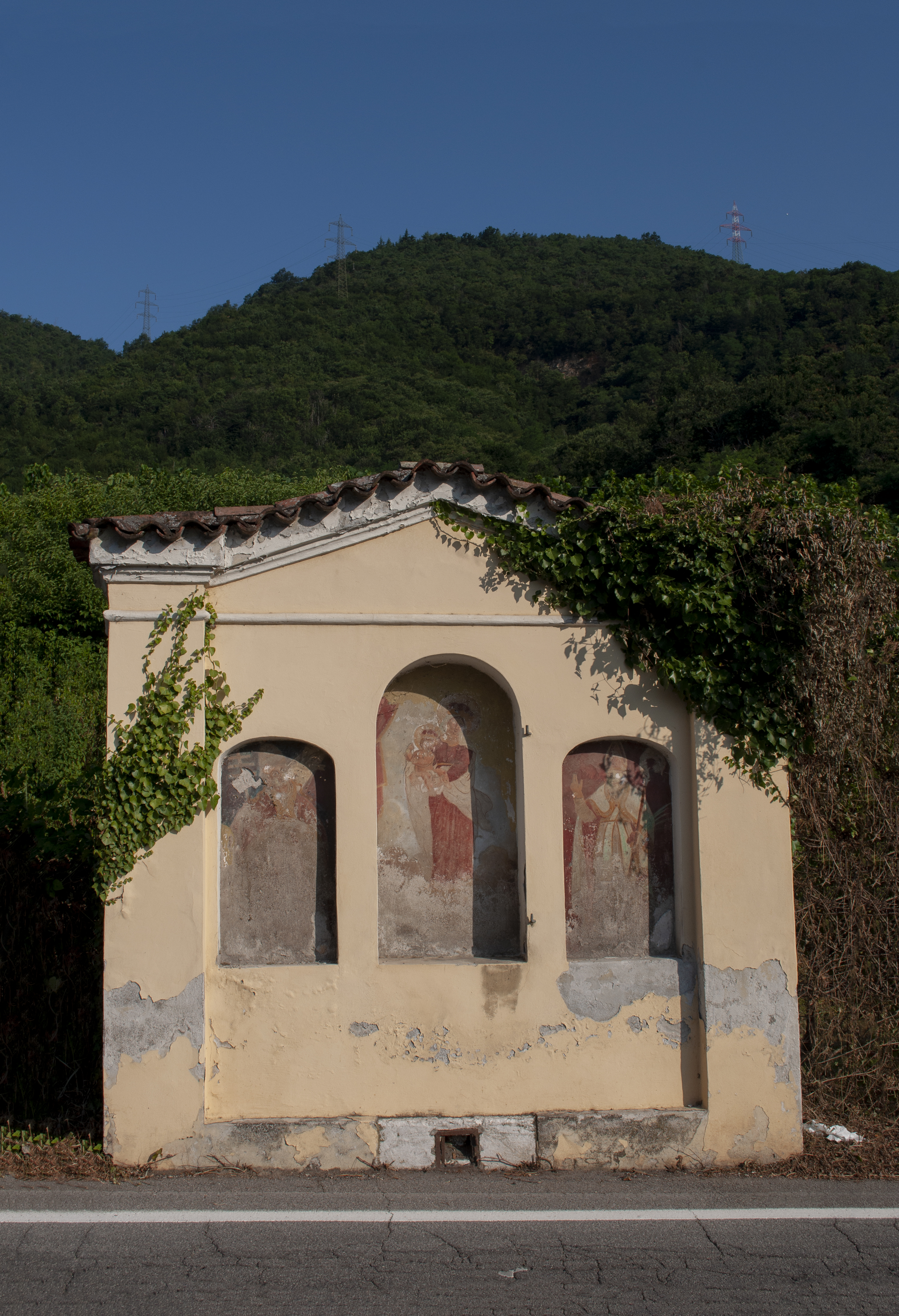 Santella con un trittico. Al centro la Madonna con il bambino ed ai lati due Papi