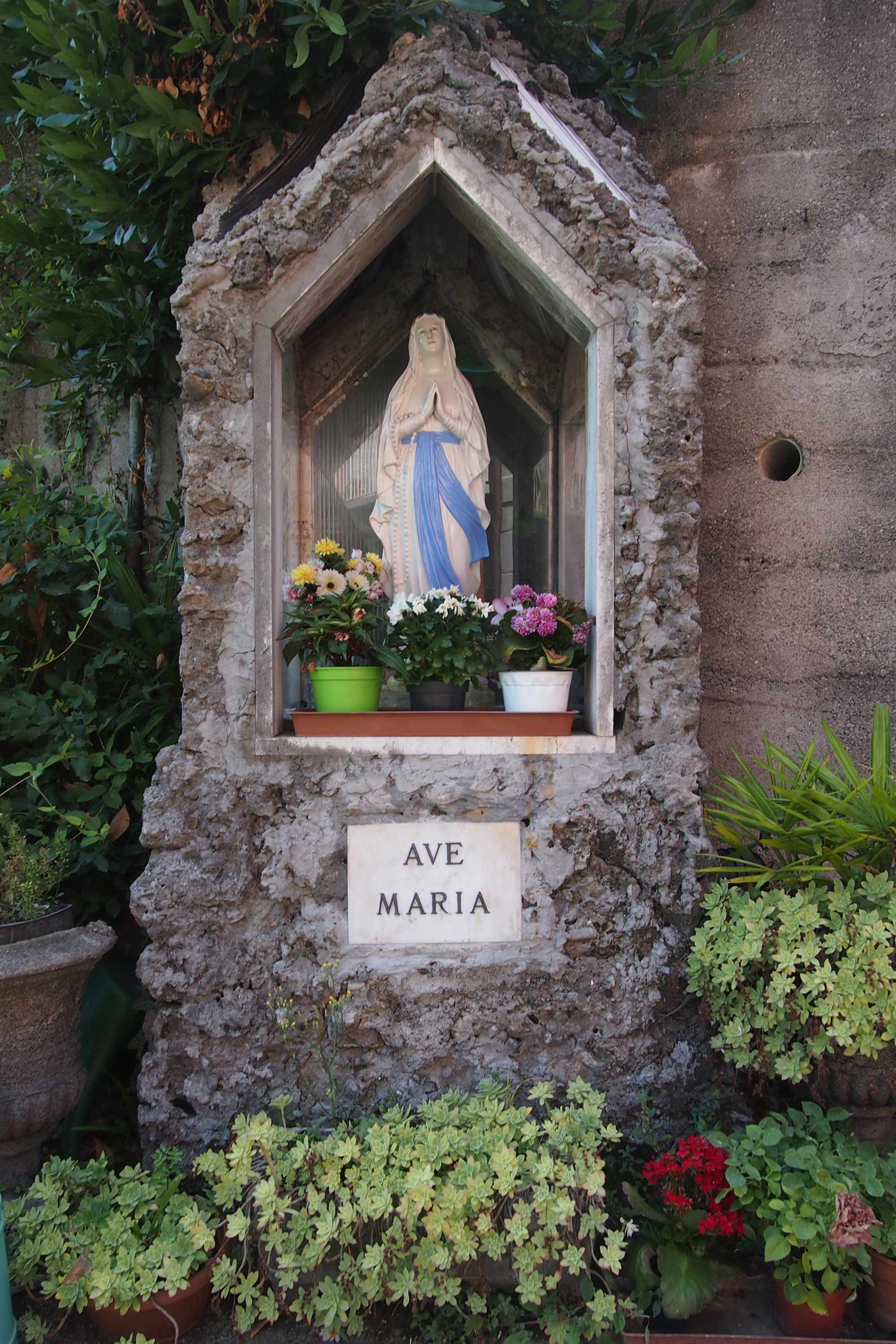 Edicola della Madonna, nel cortile delle vecchie scuole elementari di Lambrugo, ora abitazioni. Ogni anno nel mese di maggio è uno dei luoghi in cui tradizionalmente viene recitato il S. Rosario serale.