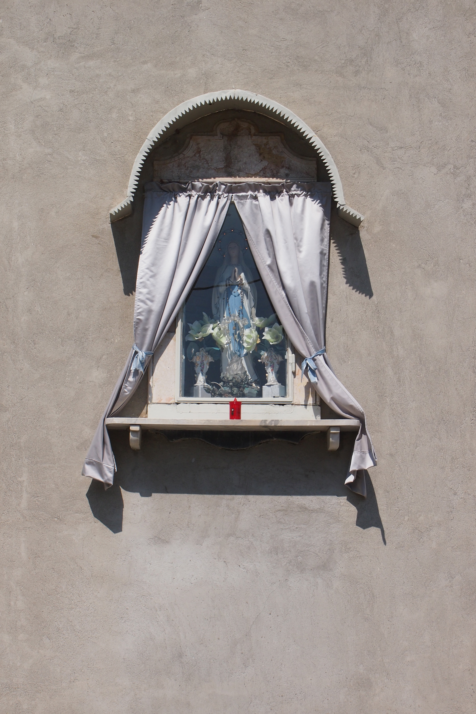Madonna nel cortile della Cascina Momberto, guarda verso la collina su cui è costruita la gran parte del paese di Lambrugo.