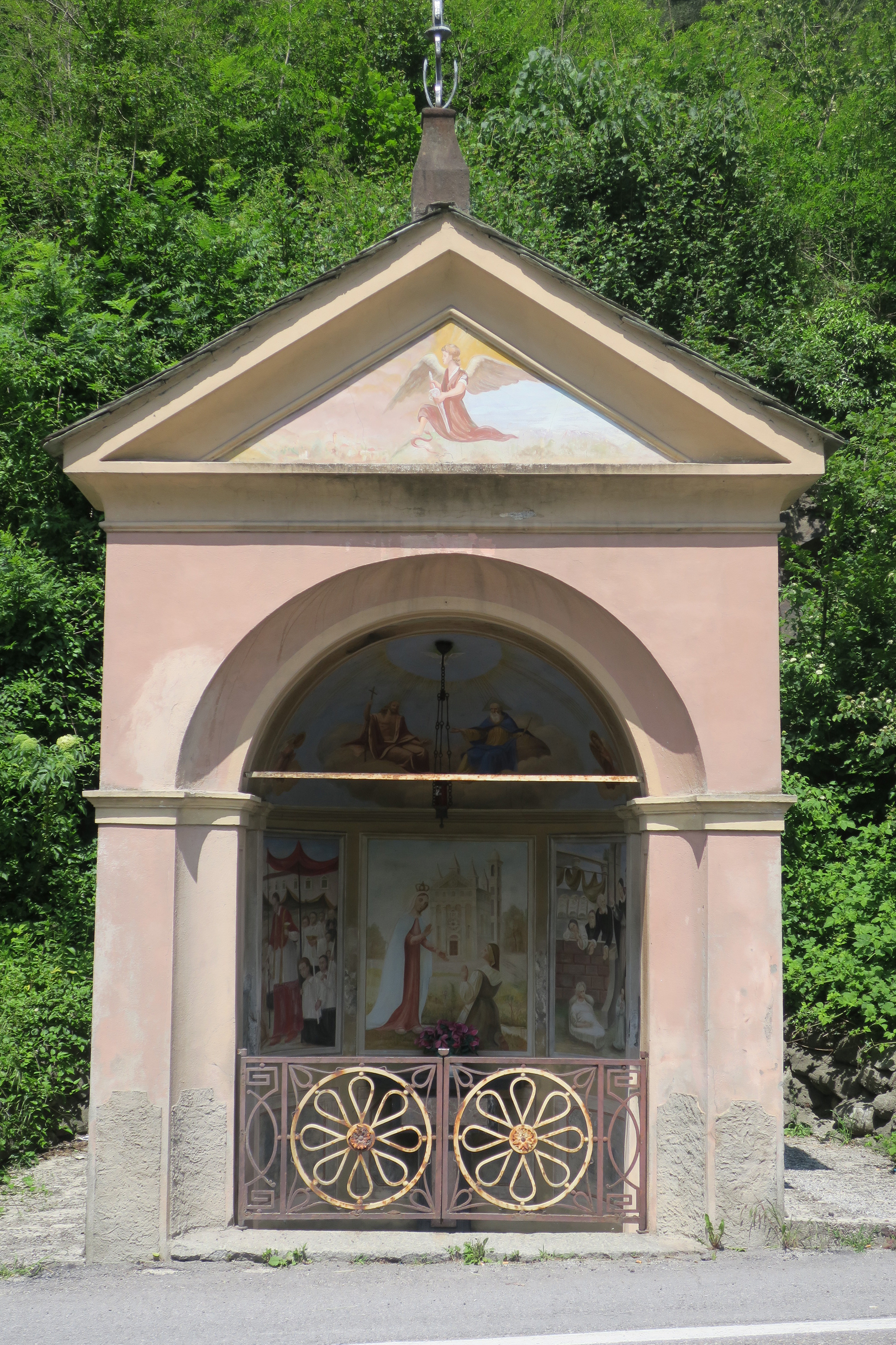 Cappelletta affrescata con angelo nel timpano