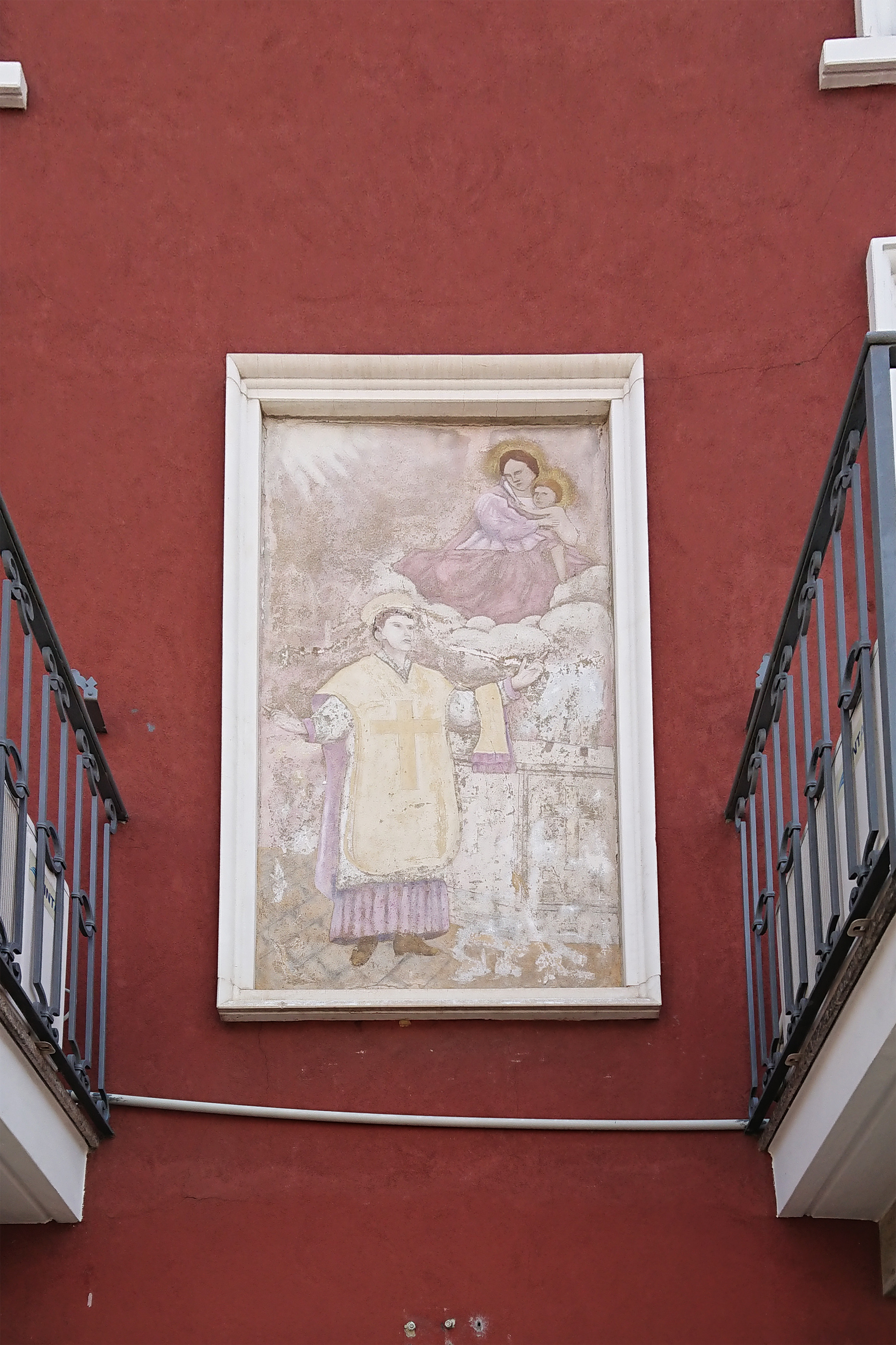 Non sono riuscito a riconoscere il giovane santo raffigurato. Bisognerà chiedere un aiuto a Don Luca di Lodi! :)
