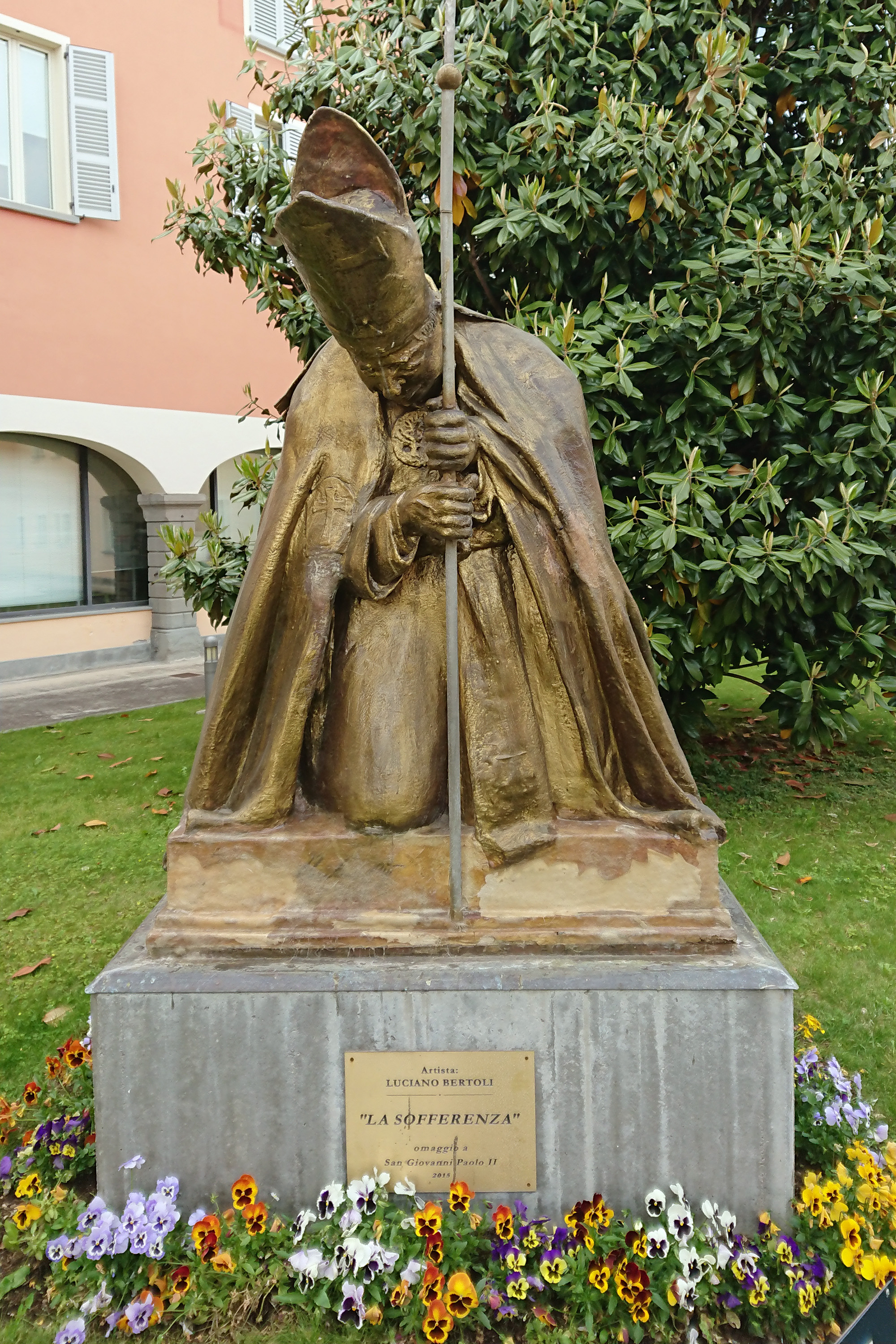 Ricorda un po' "La nona ora" di Cattelan. Il Papa è sofferente, ma sembra anche che stia guardando i fiorellini.
