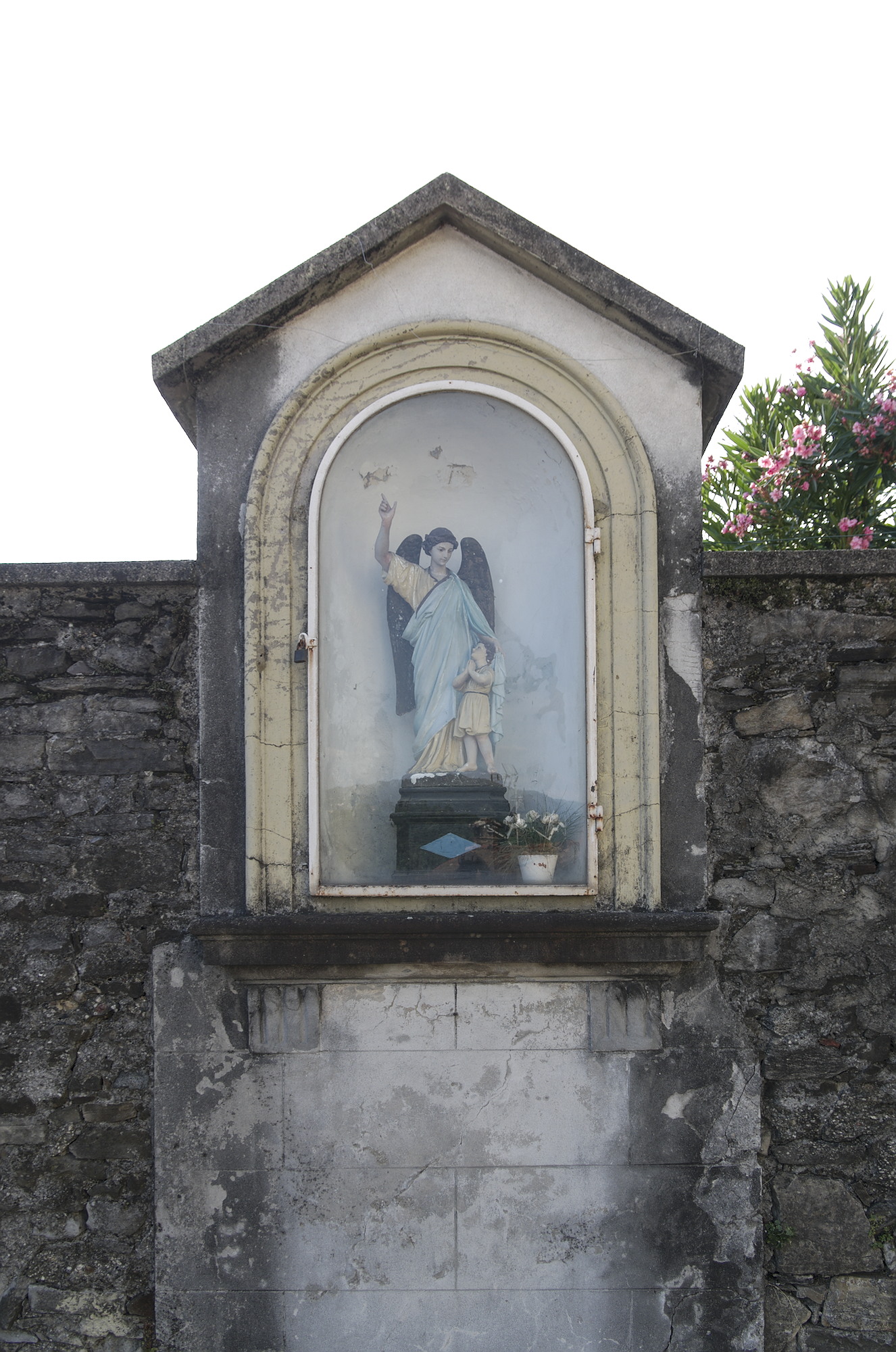 Edicola con statuetta dell’Angelo Custode. Si trova sulla scalinata che da via Bosisio/via Vittorio Veneto porta alla Chiesa parrocchiale di S. Giorgio