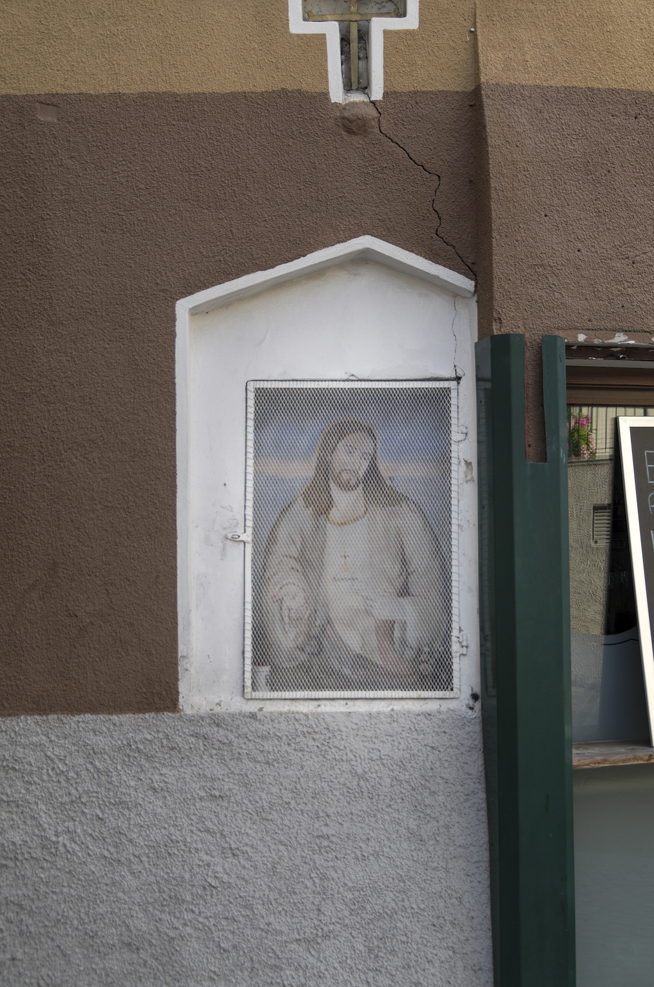 Nicchia con affresco del Sacro Cuore di Gesù - Molteno, via Roma 15, incrocio via Bosisio. La nicchia si trova sulla parete di un edificio che ospita uno storico pub del paese.