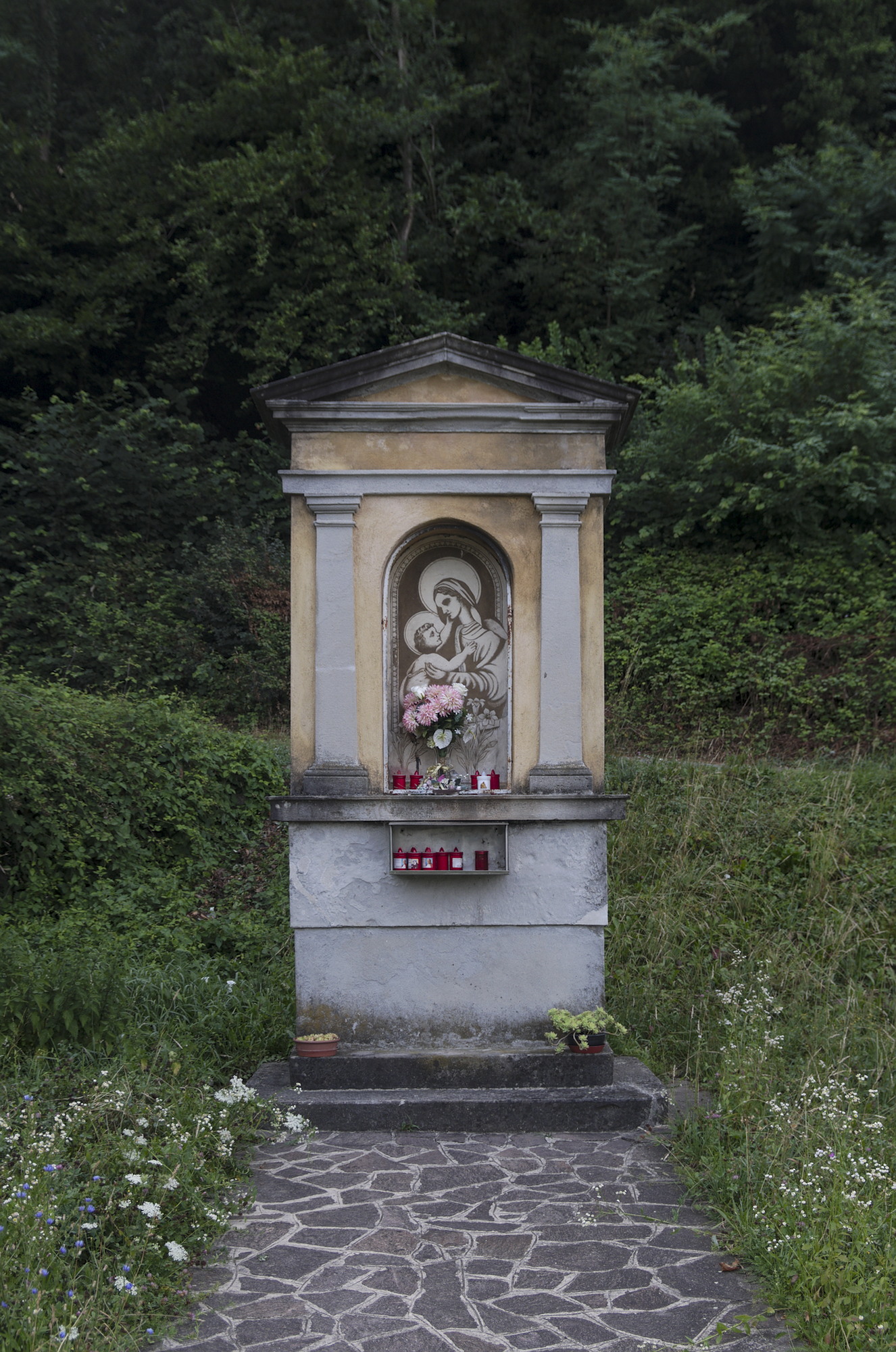 Sirone, Via don G. Minzoni - Edicocola con affresco monocromatico della Madonna con il Bambino