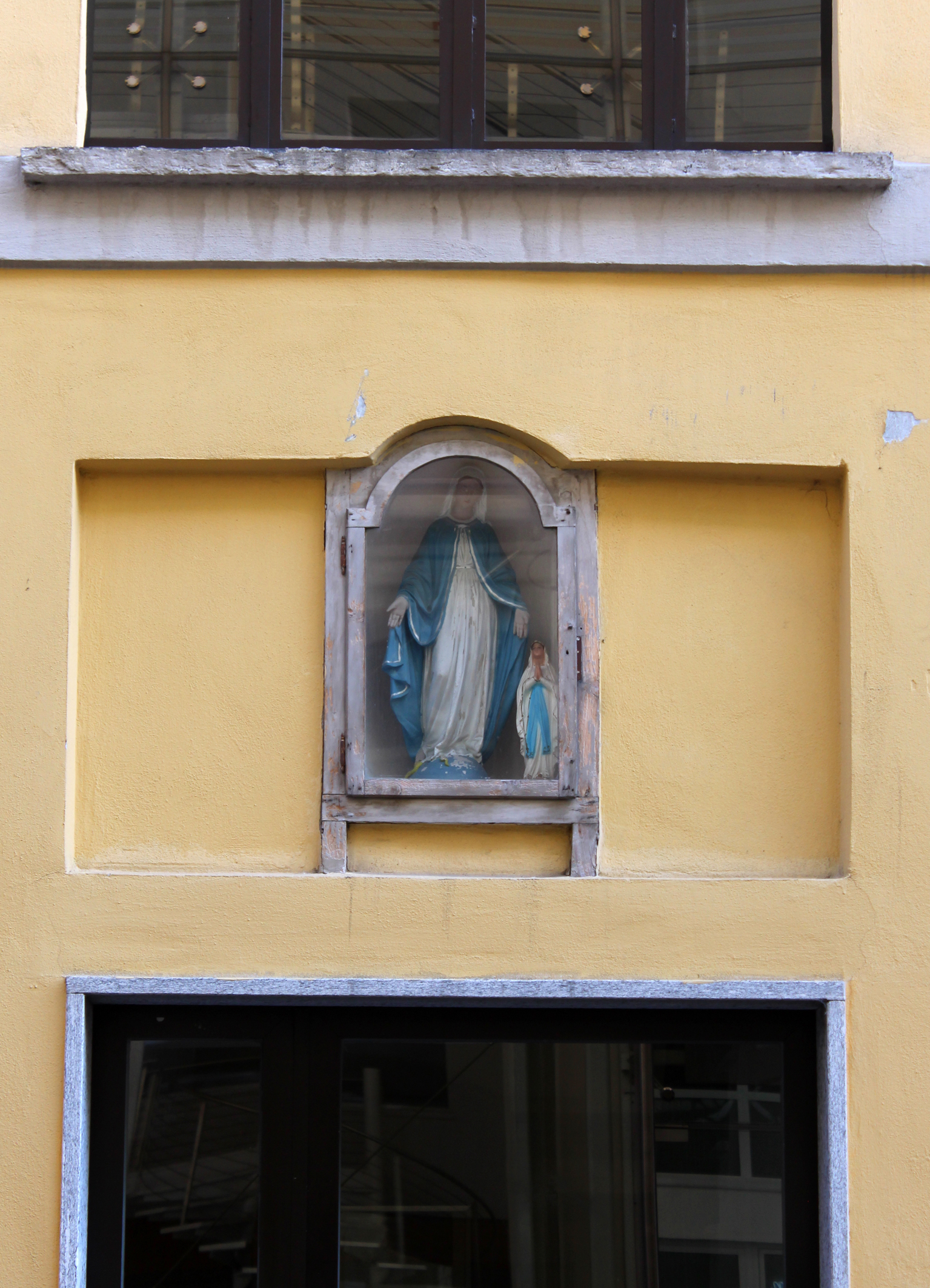 Questa Madonna si specchia da qualche anno neile vetrate di un lussuoso albergo.