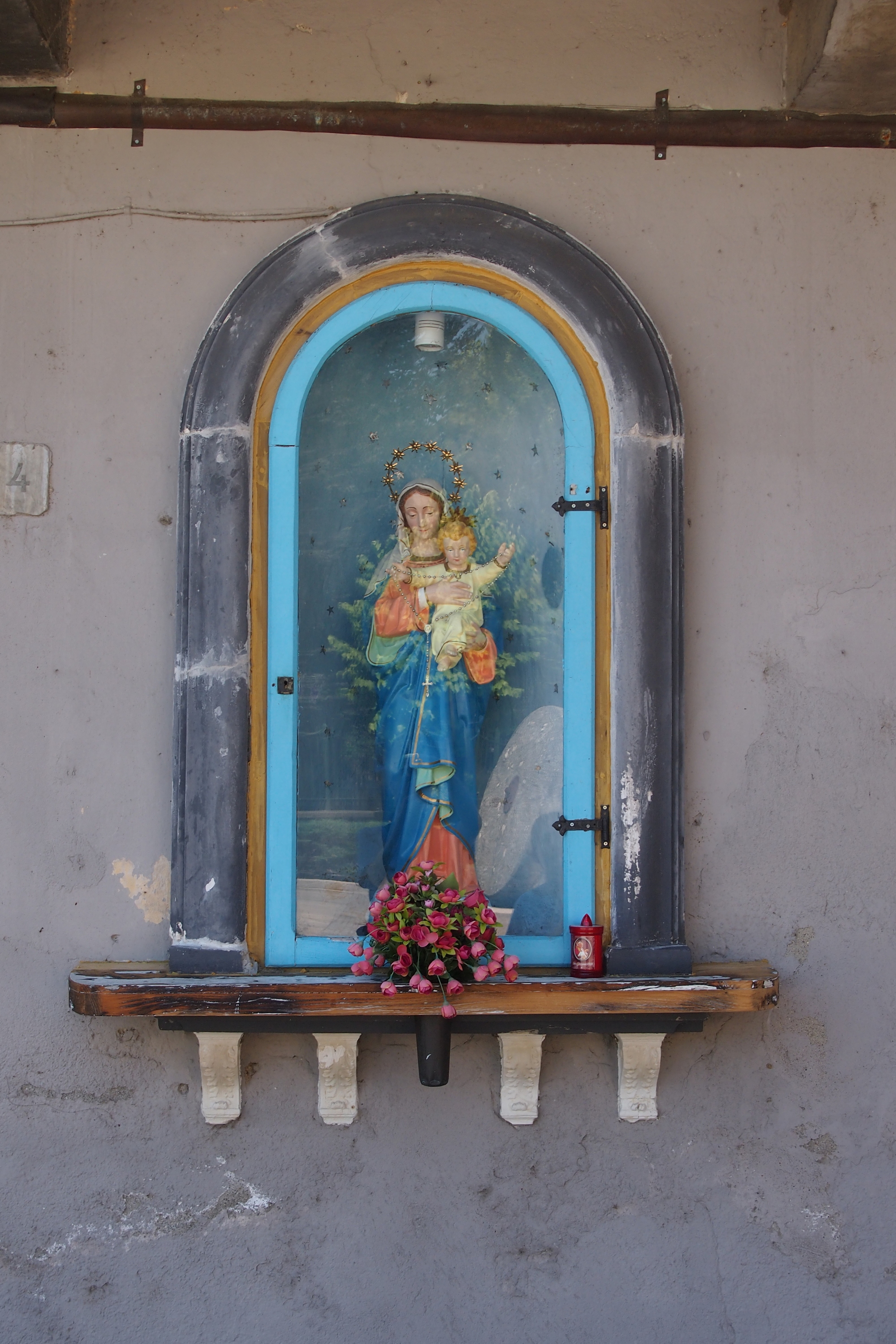 Madonna con Bambino nel cortile del vecchio Mulino di Baggero, frazione di Merone. Ogni anno, nel mese di maggio, è una delle mete del Rosario itinerante della parrocchia di Lambrugo (alla quale appartiene la frazione, pur essendo in un altro comune).