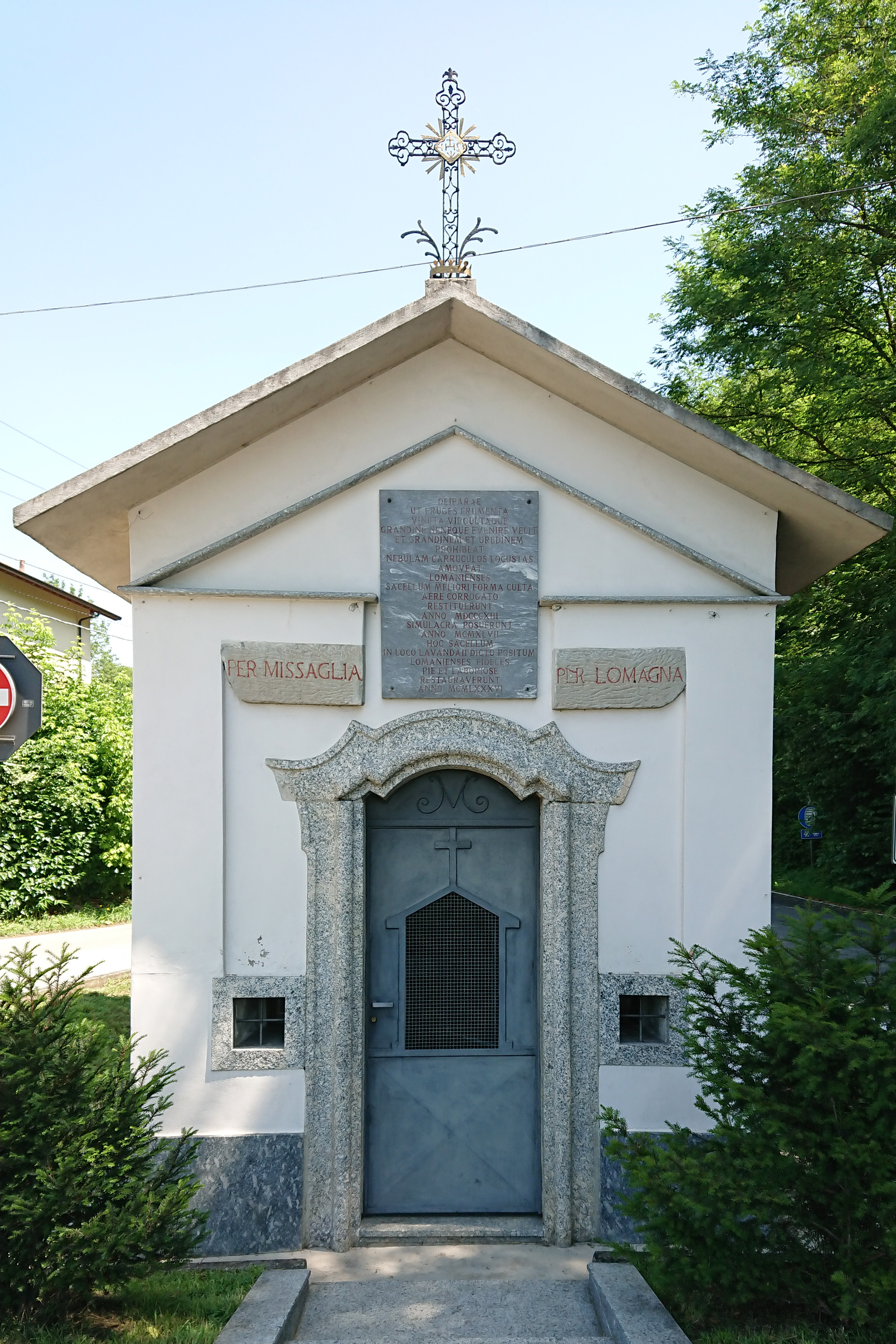 L'interno della cappelletta è molto buio, ma mi sembra proprio di aver riconosciuto le figure della Madonna di Caravaggio e della fanciulla.