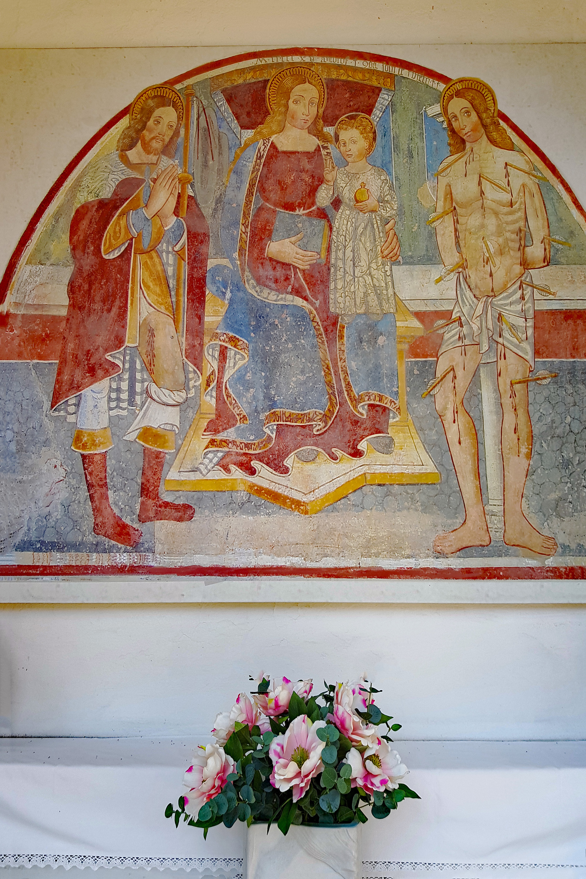Incastonata nel santuario della Madonna della cintura (già Madonna del pilastrello), il nome deriva dalla confraternita che risiedeva dove è presente questo affresco.