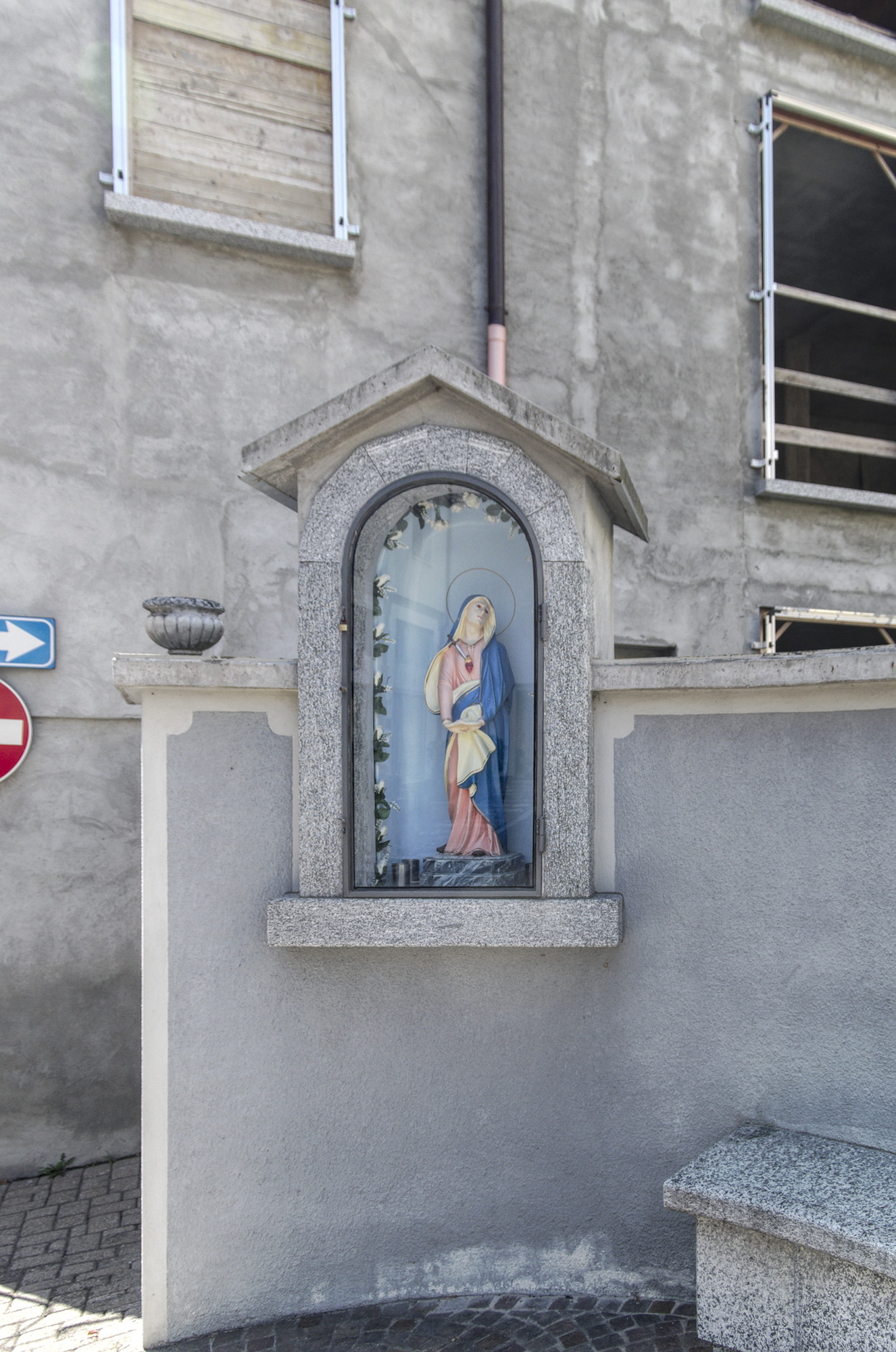 Edicola con statuetta di Maria Addolorata (cuore trafitto da una spada) - Costa Masnaga, via XXV aprile incrocio via Beretta Andina
