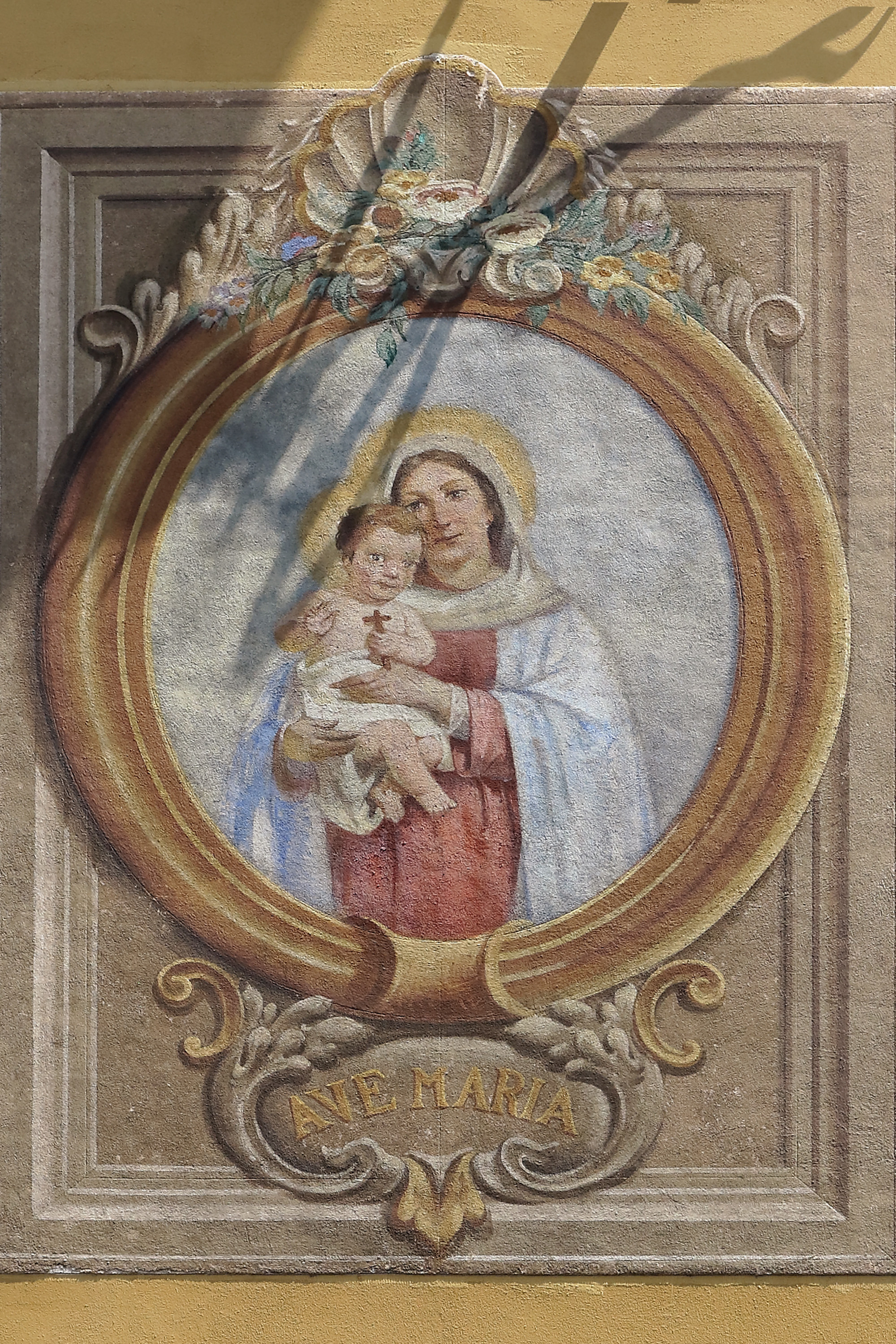 Affresco risalente alla prima metà del XX secolo e restaurato in occasione della ristrutturazione dell’edificio di proprietà delle Suore Misericordiose. Venne anche rimosso un baldacchino in ferro che era stato posizionato a protezione.