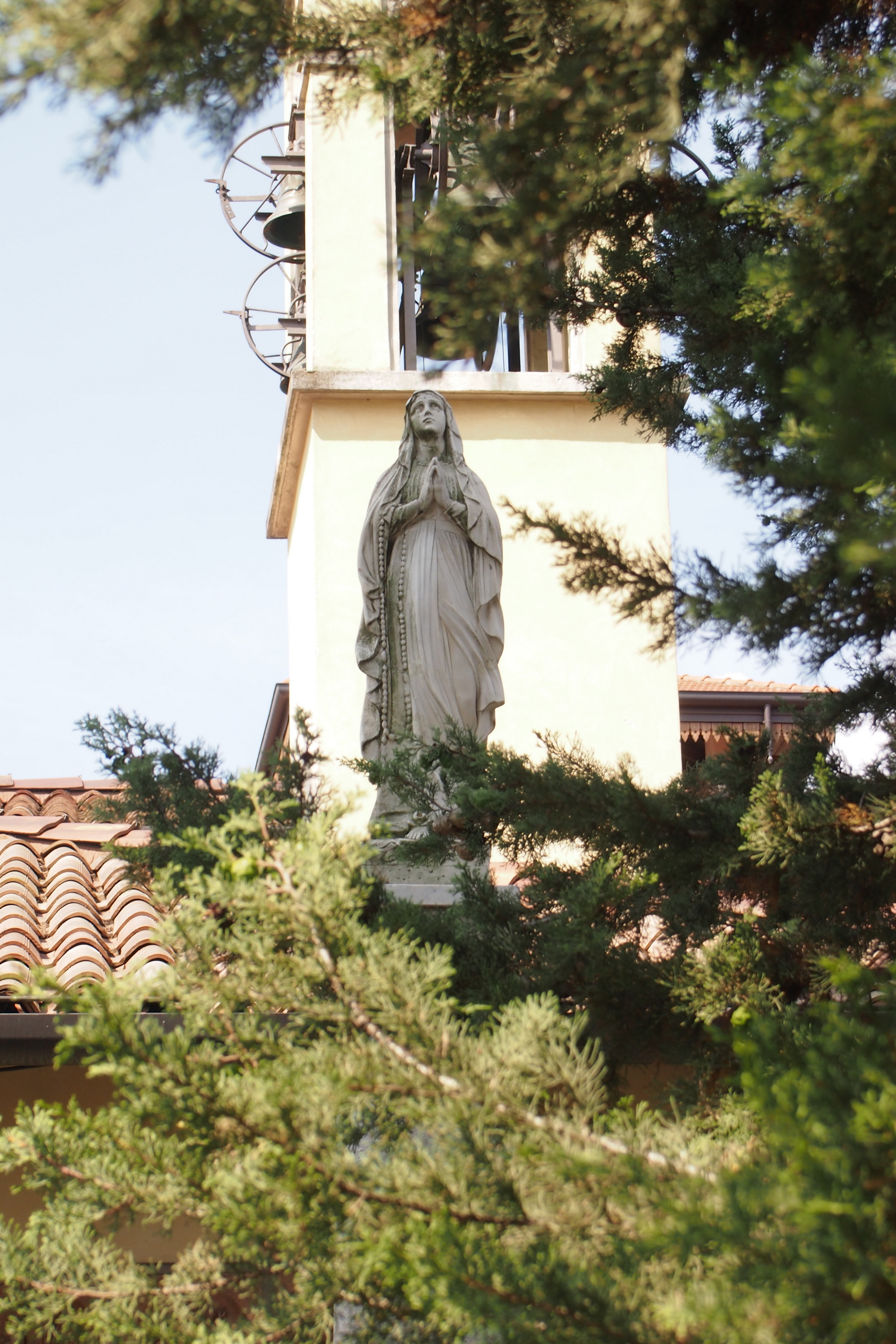 Statua della Madonna posta su un'alta colonna di fianco alla Chiesetta di San Biagio a Bigoncio, frazione di Inverigo.